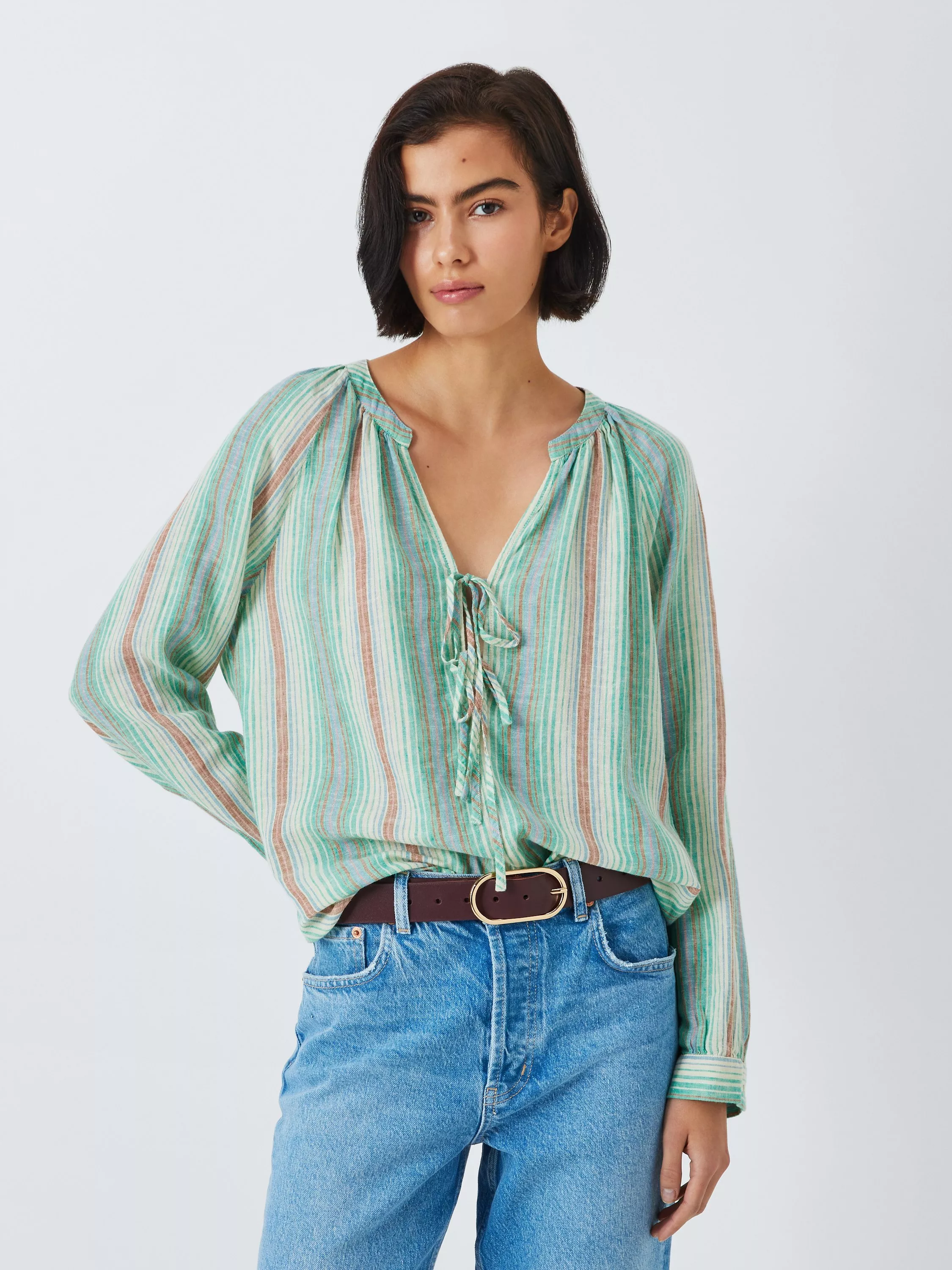 An effortless choice, this blouse from Rails flatters the figure with its striped pattern.