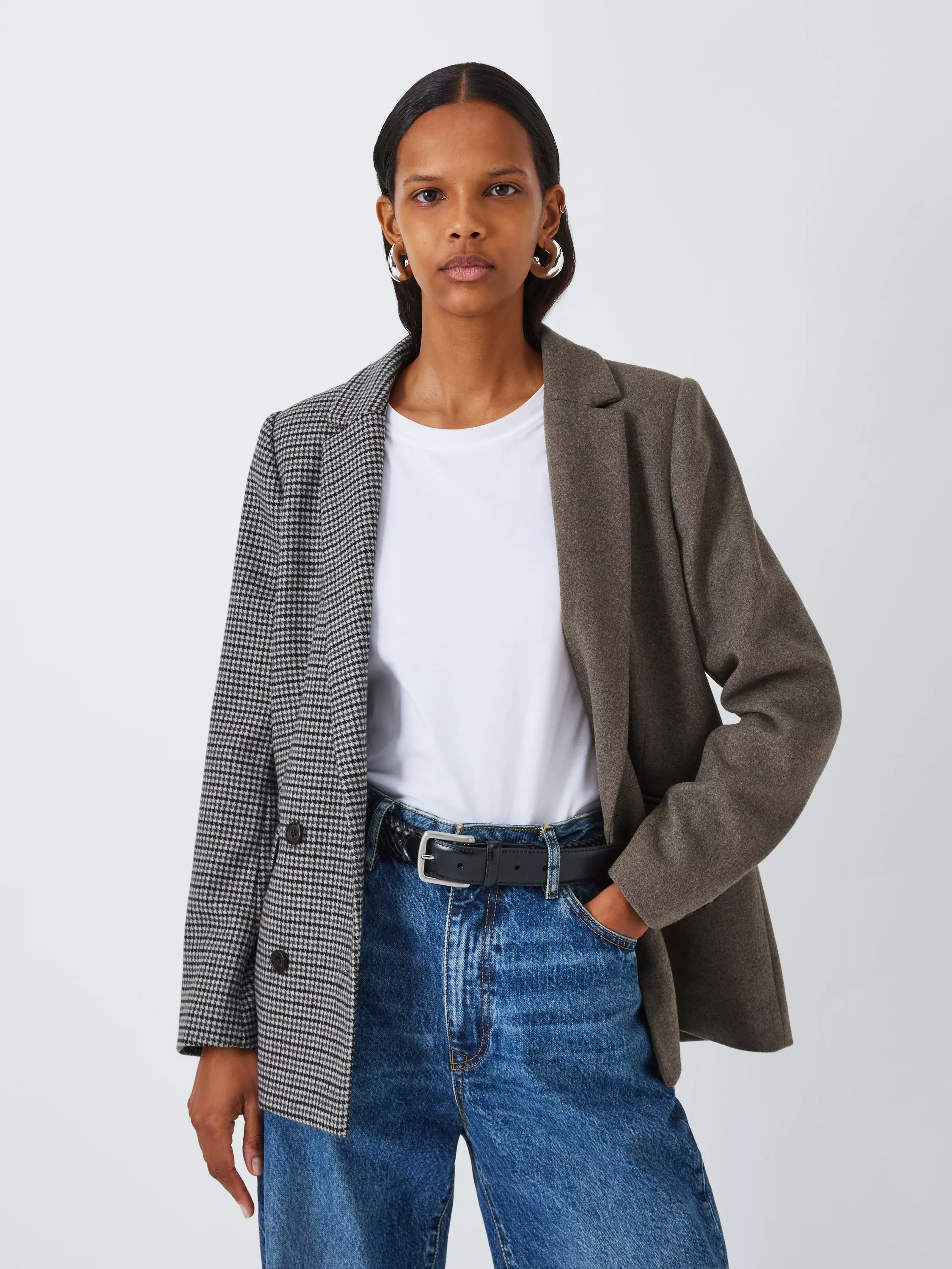 Tailored to perfection, this menswear inspired blazer will take your style to the next level. Made from a wool blend, this double-breasted check blazer jacket features faux horn buttons, notched lapels and functional flap pockets.