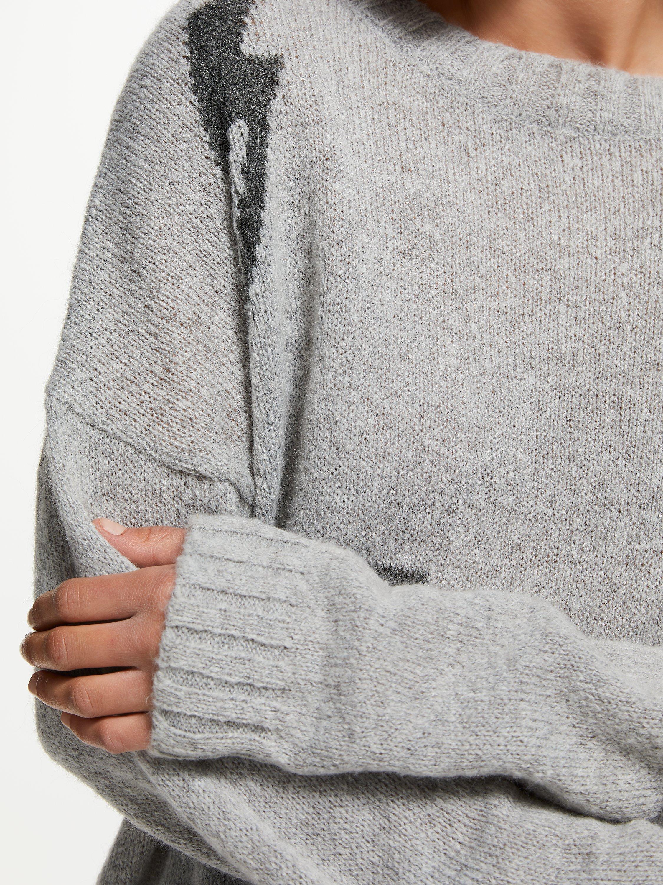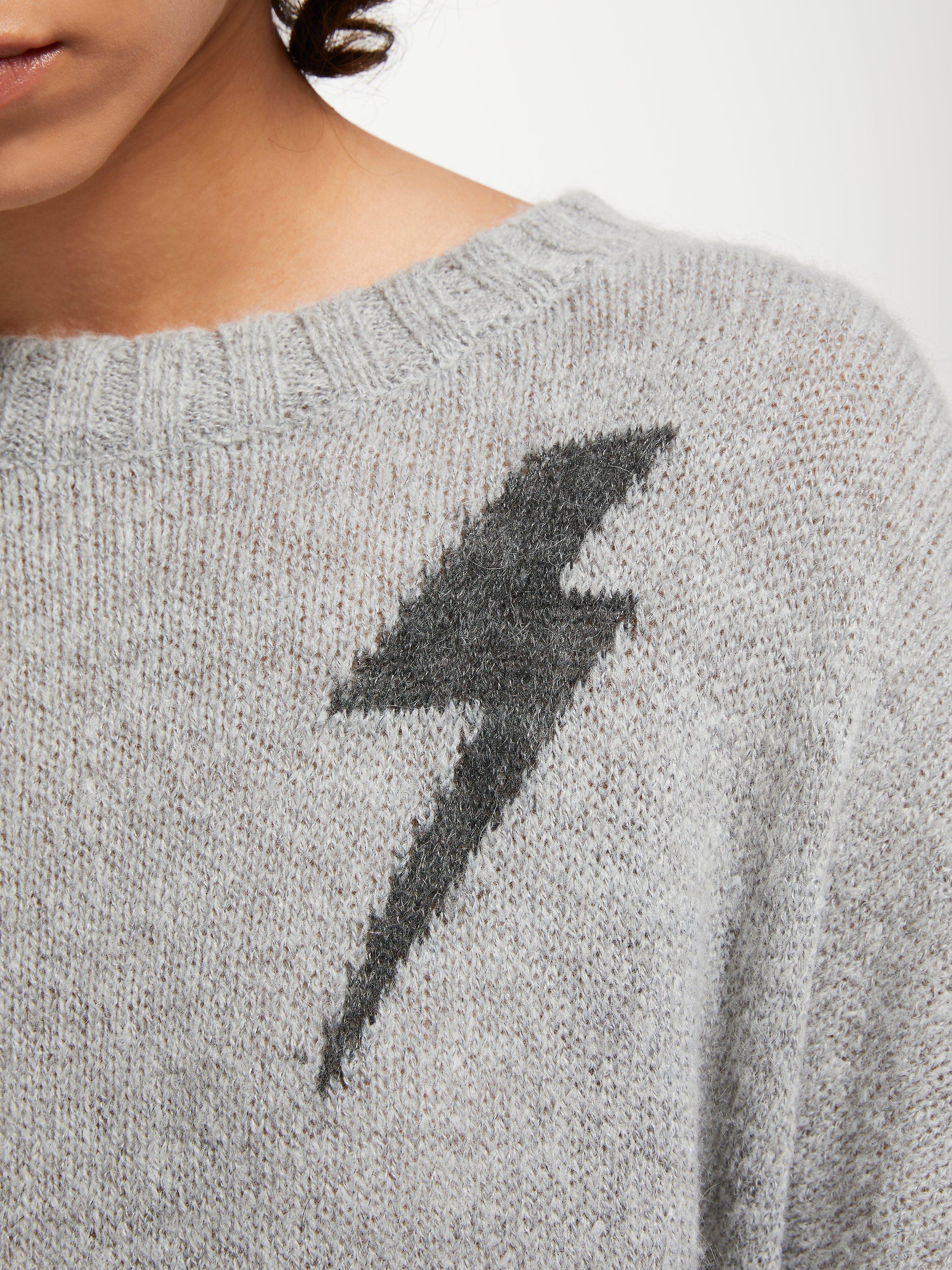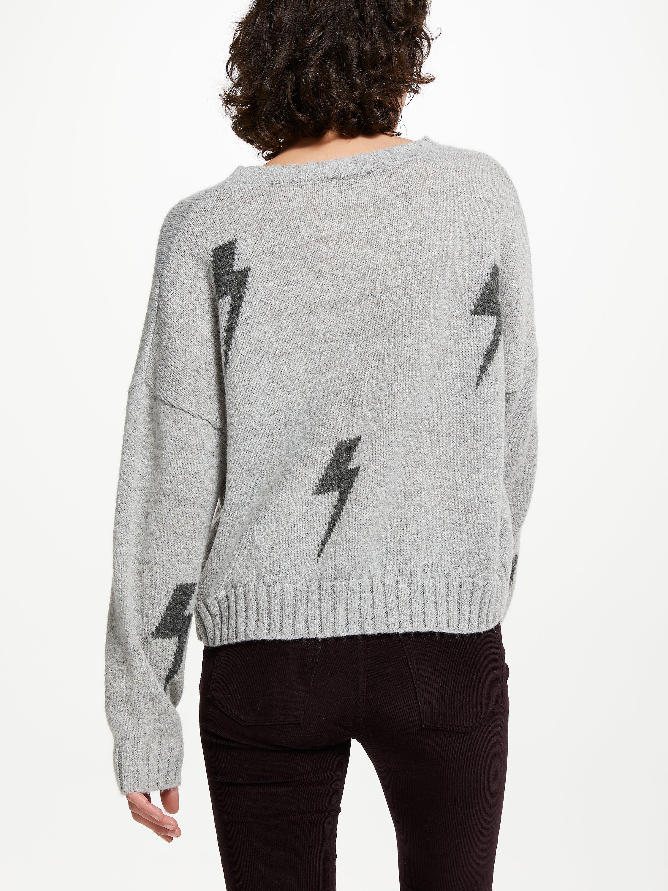 Soft and cosy, this jumper offers a relaxed shape with dropped shoulder sleeves and a slightly cropped hem that effortlessly pairs with skinny jeans. It is finished with ribbed trims and a lightning bold motif to lift your look.