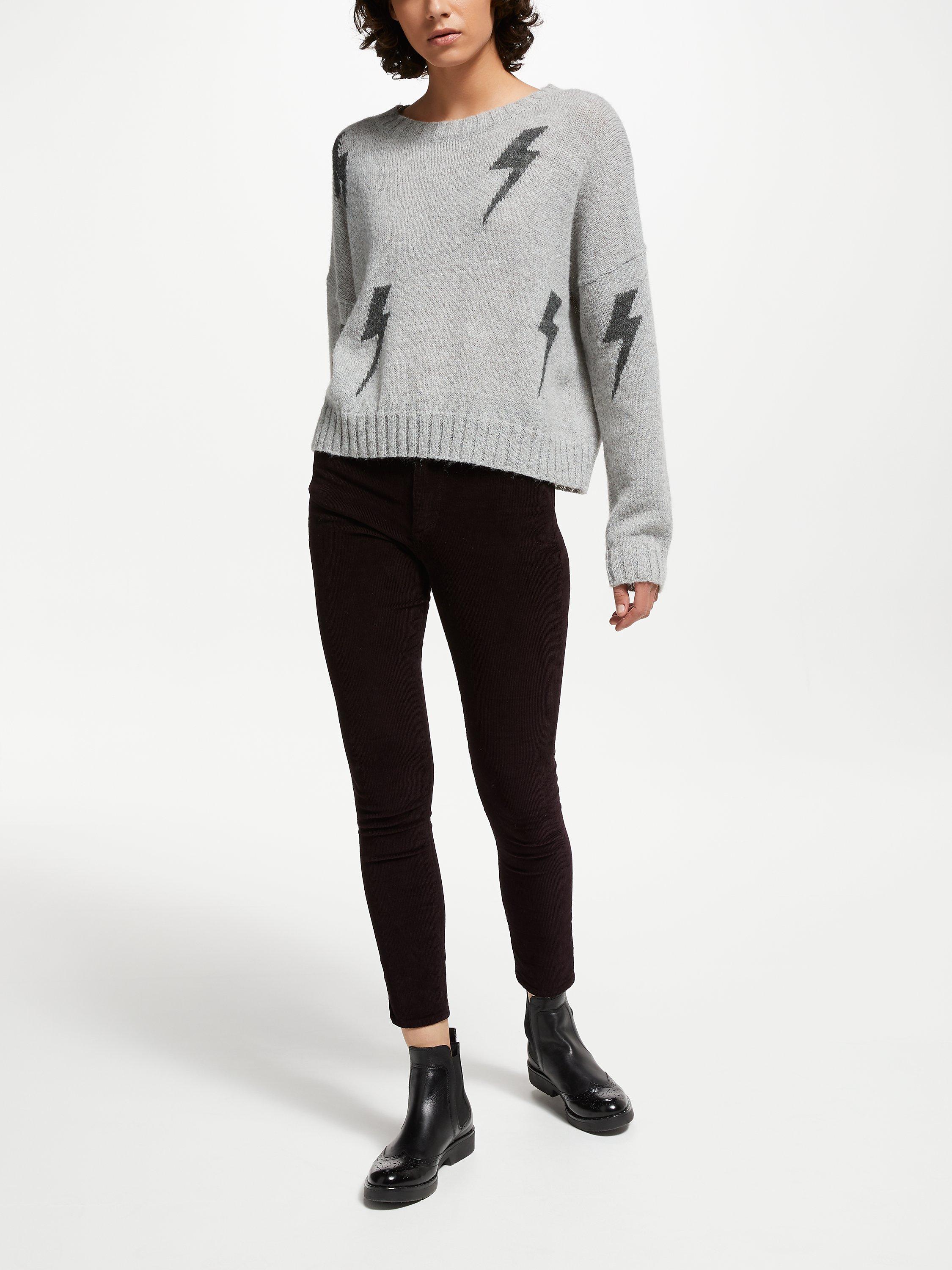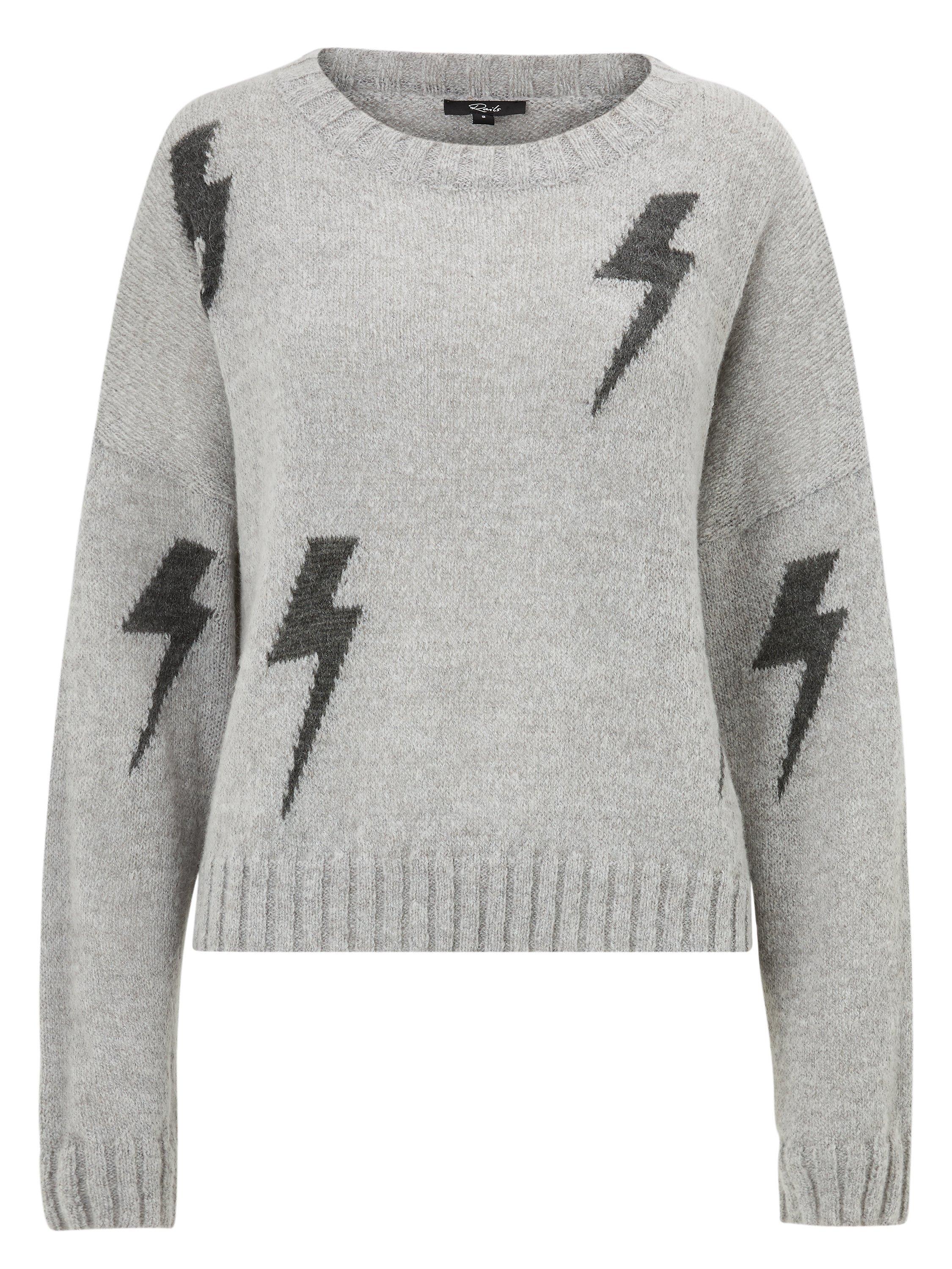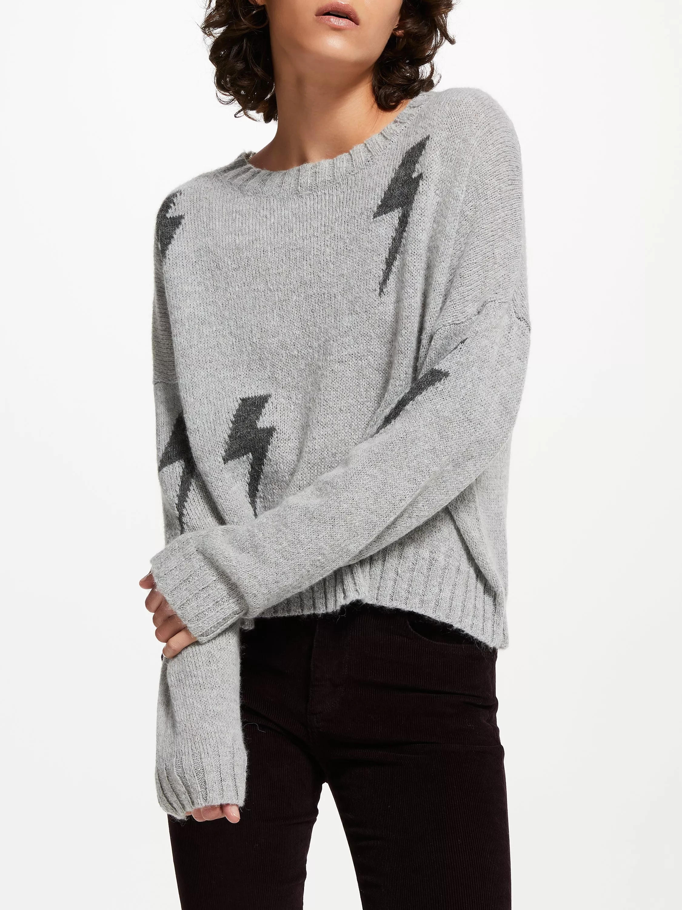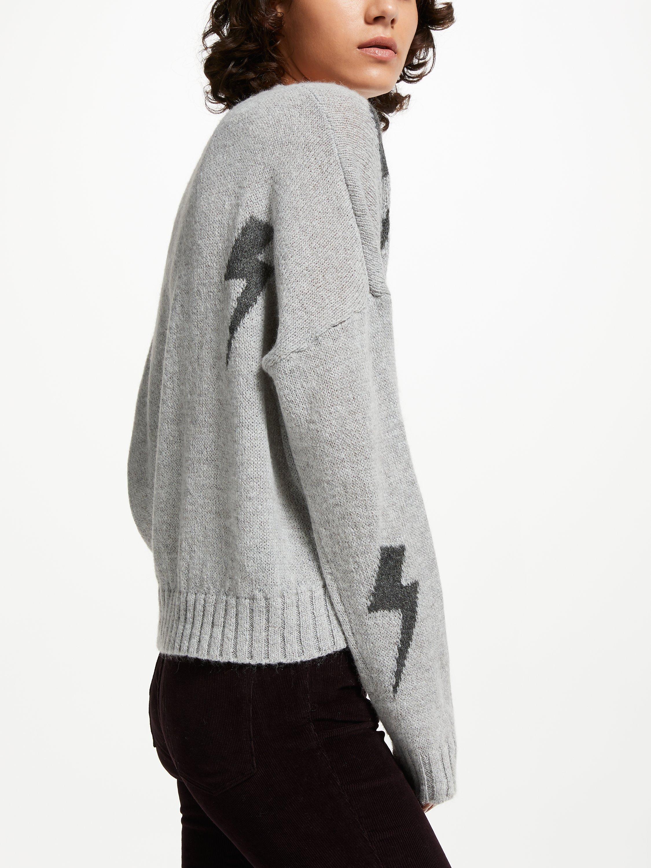 Soft and cosy, this jumper offers a relaxed shape with dropped shoulder sleeves and a slightly cropped hem that effortlessly pairs with skinny jeans. It is finished with ribbed trims and a lightning bold motif to lift your look.