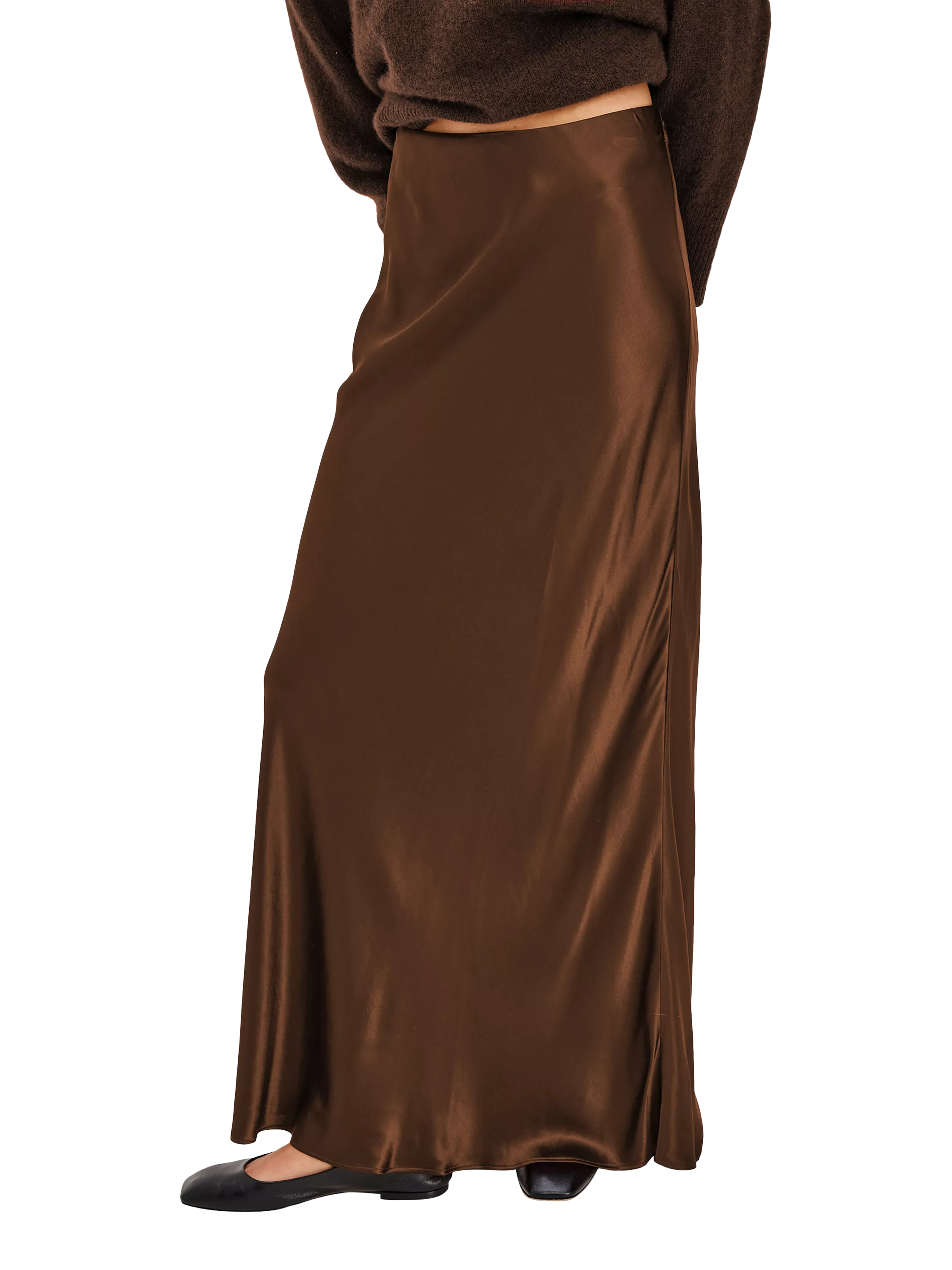 No closet is complete without a satin crepe skirt, and Romina is ready to fill the role. Cut on the bias from a smooth satin-back crepe, the Romina moves with you to create an effortlessly flattering silhouette. Dress up or down with ease; the Romina is a wardrobe staple for a reason.