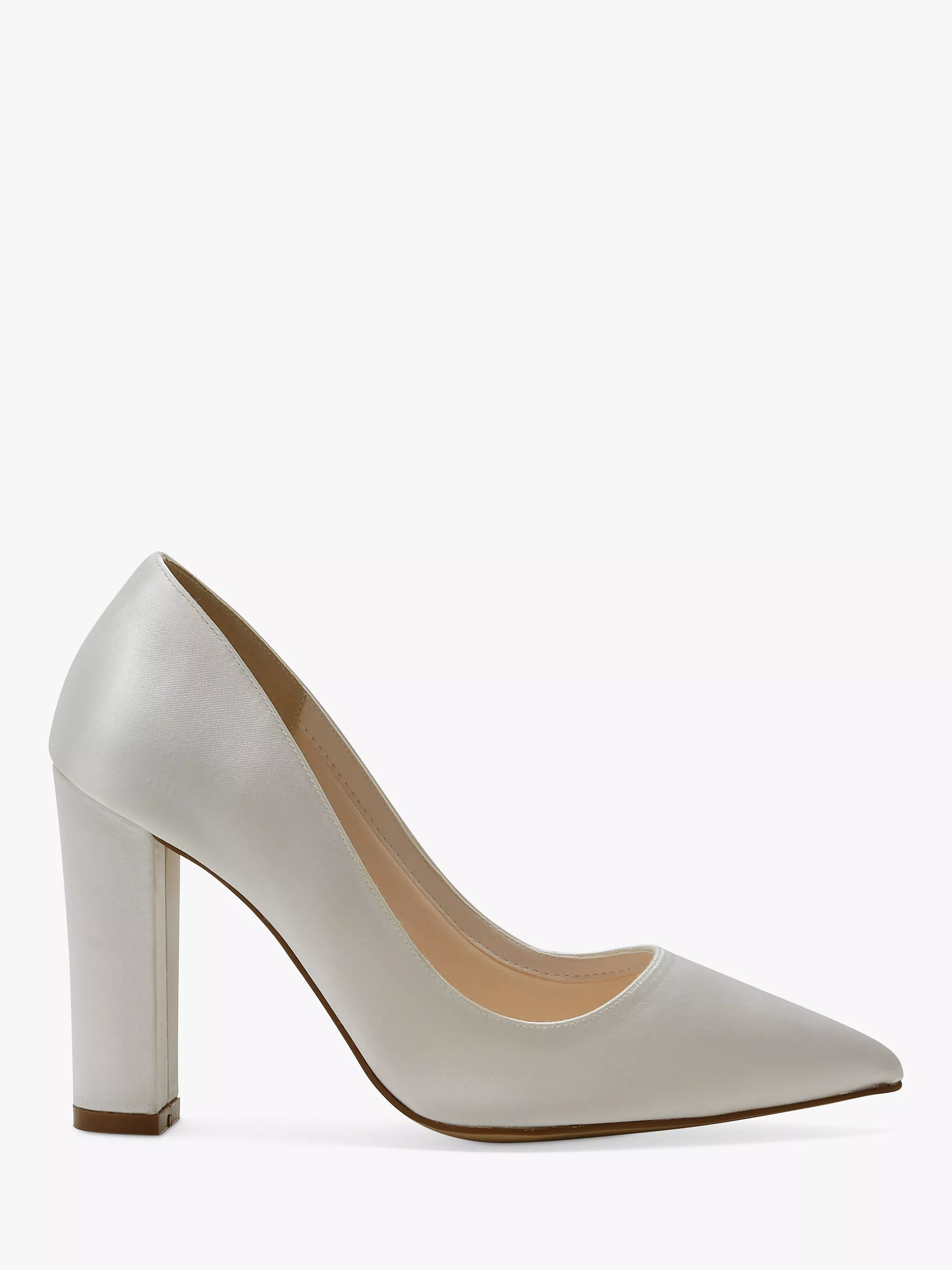 Beautifully cut to a sleek silhouette, they have a pointed toe, and a high, but wearable, block heel. The perfect bridal shoe for those who want all the height and all the comfort, they can also be dyed to match bridesmaid dresses or wedding guest outfits, too.