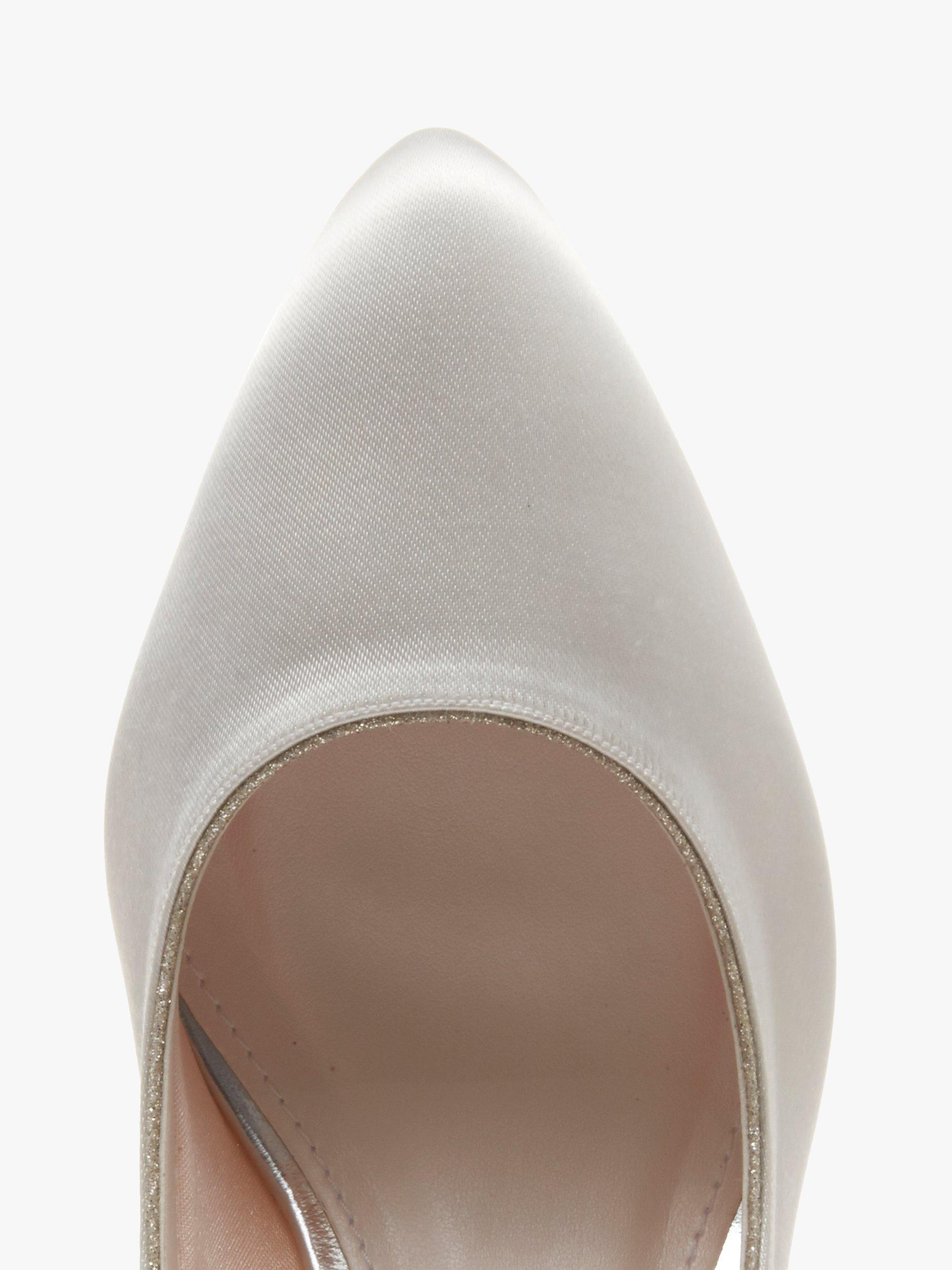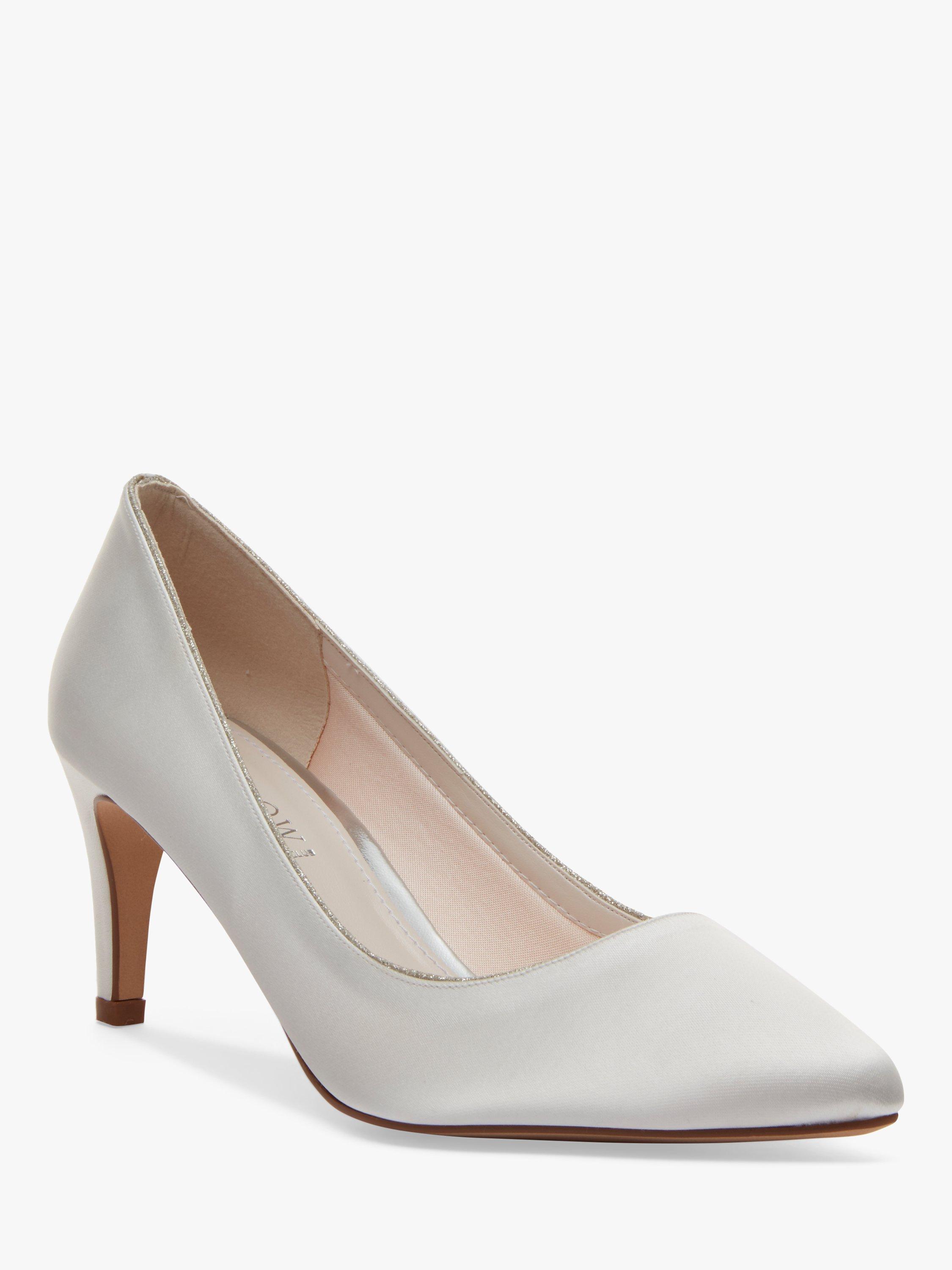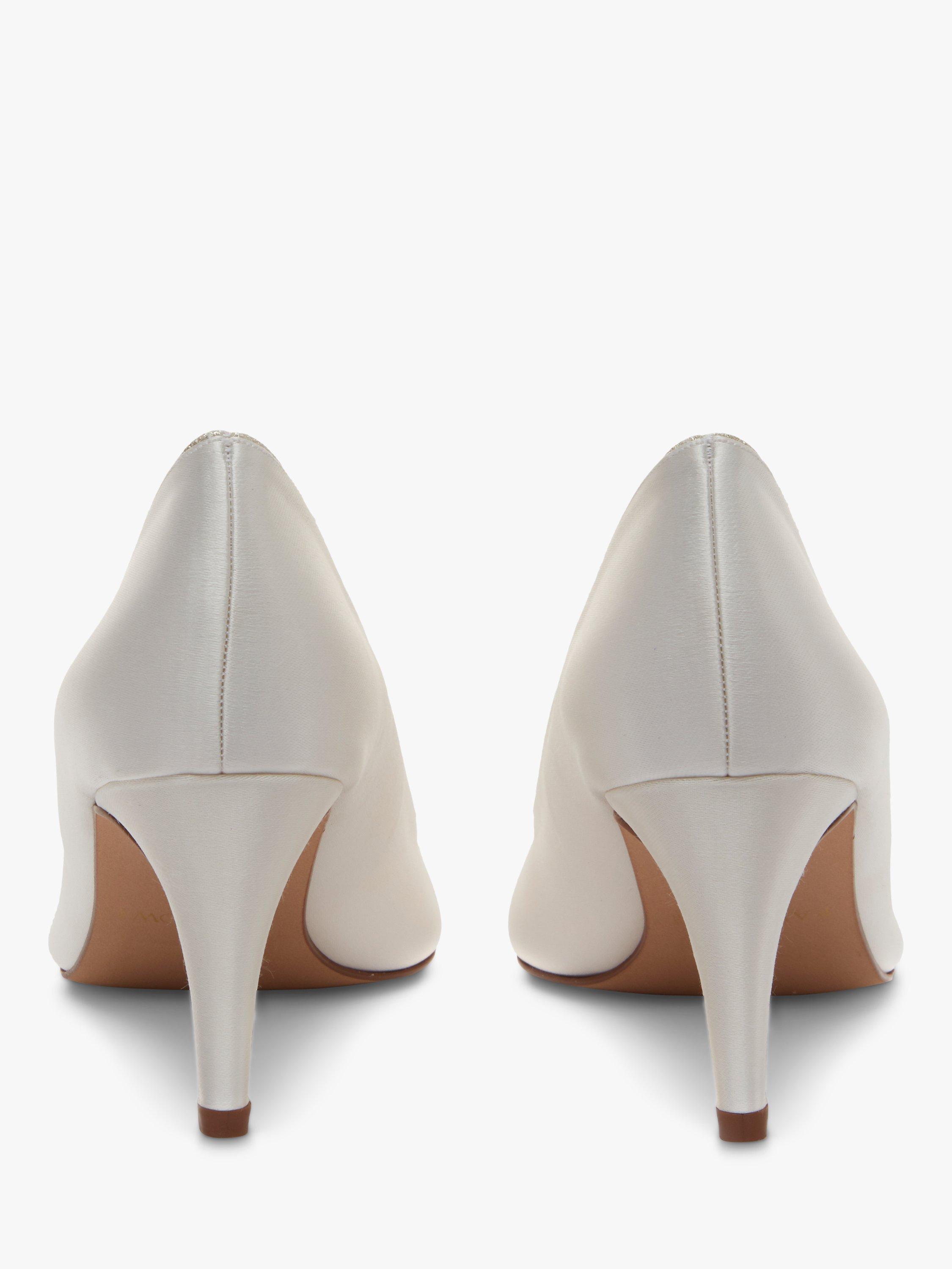 A simple style with just a hint of sparkle, Stella is a brand new wedding shoe. Crafted from luxurious ivory satin, this understated design is a classic court with a sleek silhouette, pointed toes, a delicate trim in our silver fine shimmer and a mid-height straight heel. Stella offers a subtle twist on a timeless bridal shoe all thanks to a little sparkle.