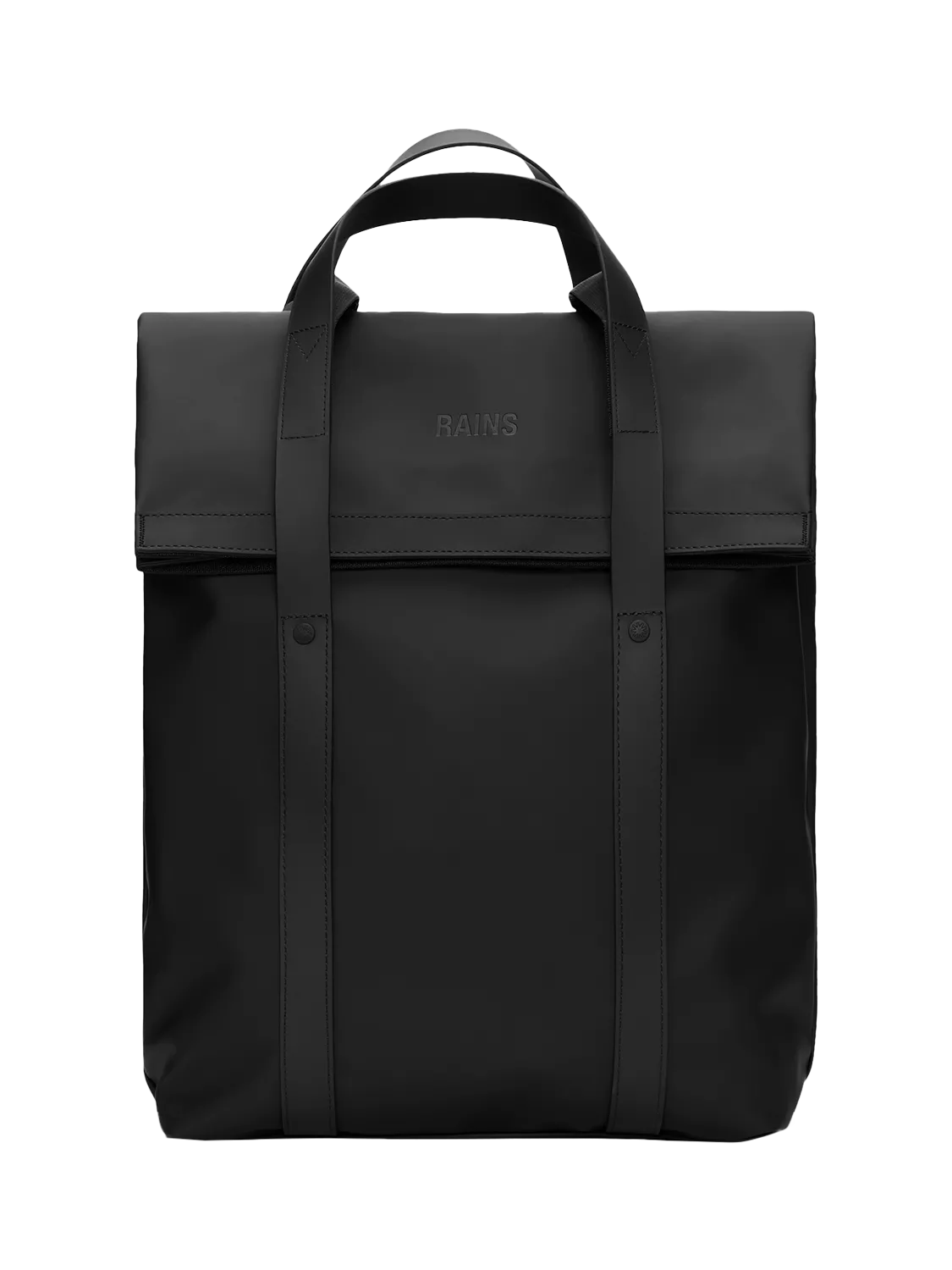The 2-Way Tote Backpack is cut from Rains' signature PU fabric, engineered for carrying strength, durability and a smooth feel.