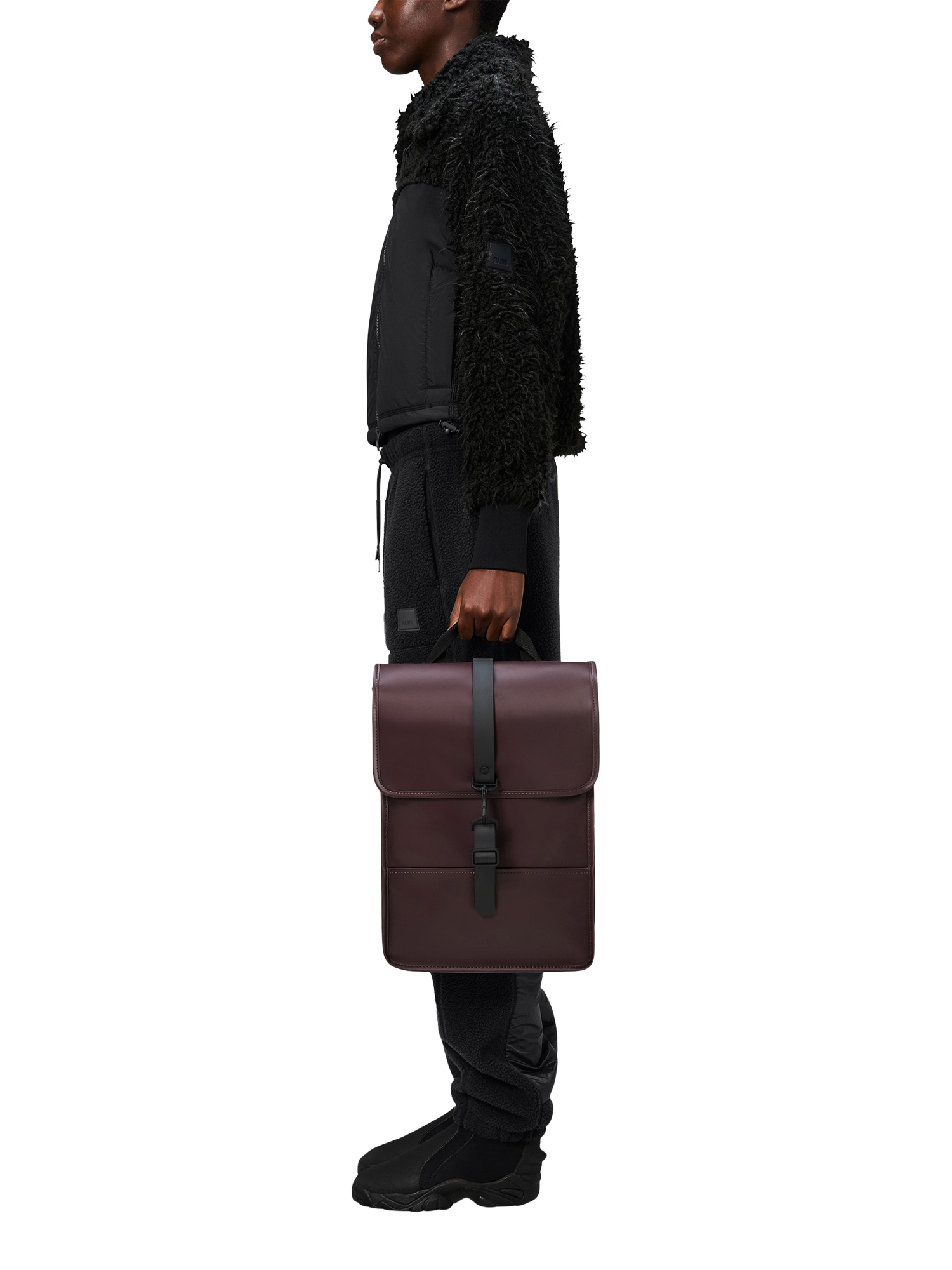 Backpack Mini is cut from Rains' signature PU fabric, engineered for carrying strength, durability and a smooth feel.