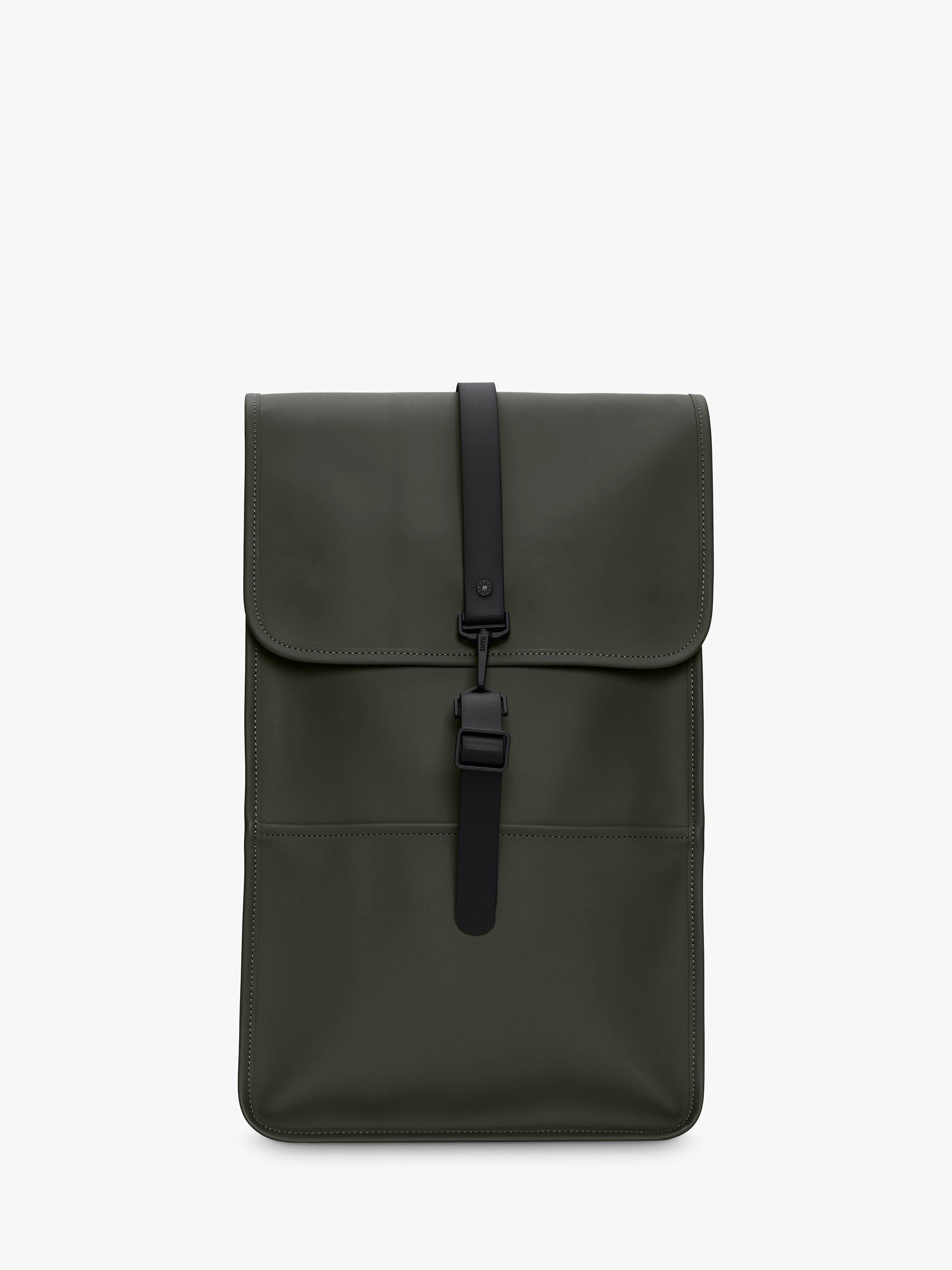 The Backpack silhouette is a Rains classic, characterized by its prominent flap and central strap with carabiner closure. This clean and ever-contemporary water-resistant rucksack features an internal laptop pocket, a spacious main compartment, and a concealed external phone pocket on the back panel.