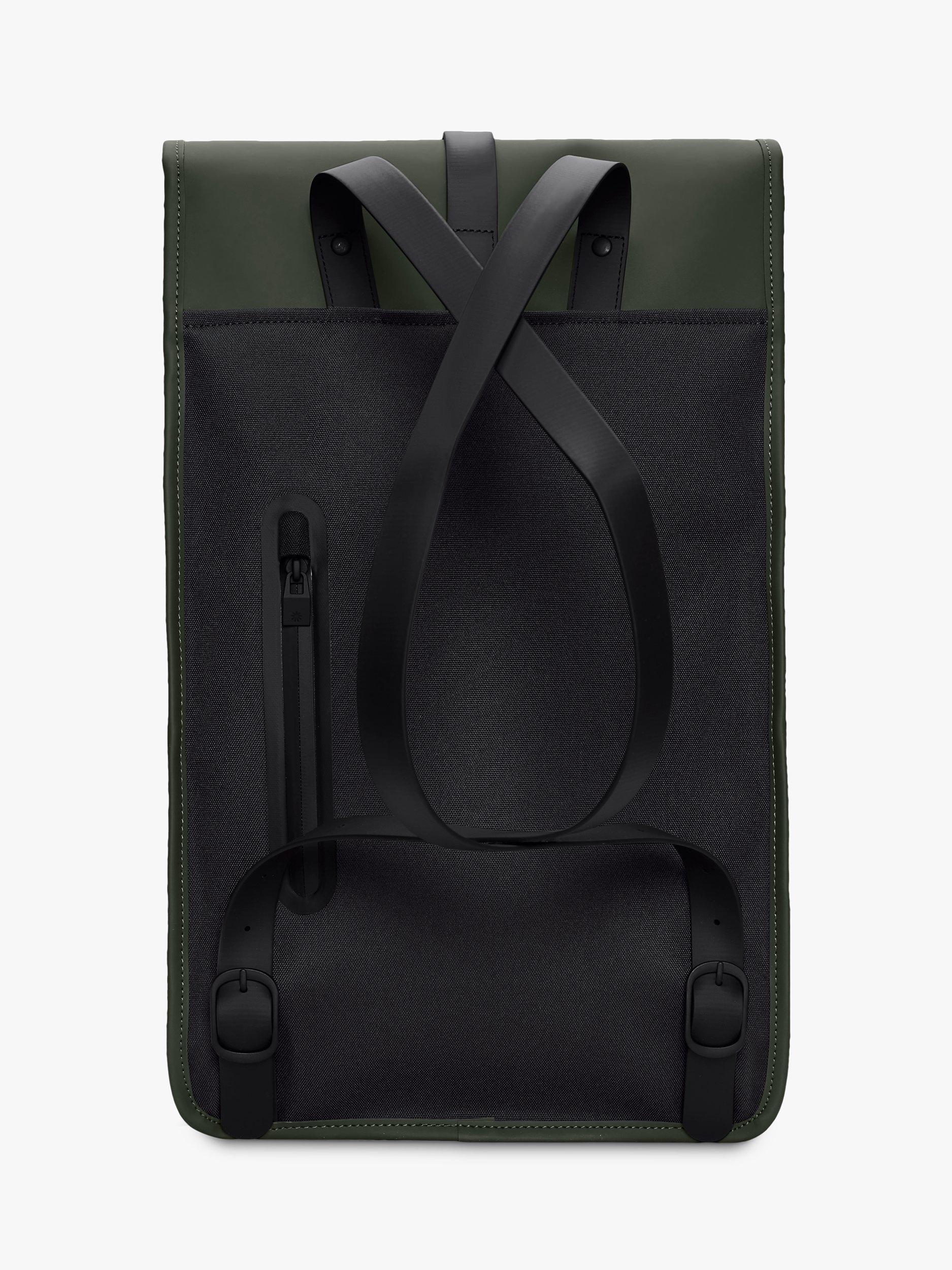 Backpack is cut in Rains signature waterproof PU fabric, engineered for carrying strength, durability, and a smooth feel.
