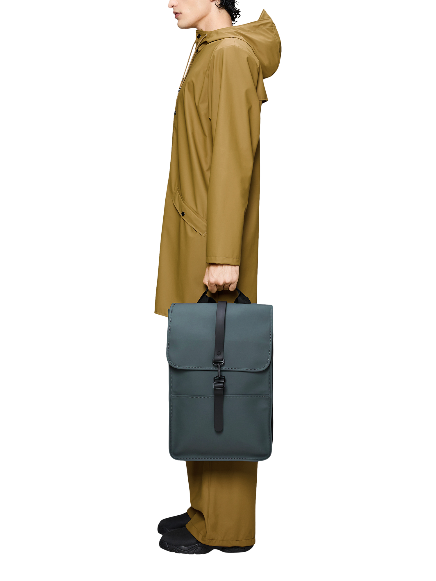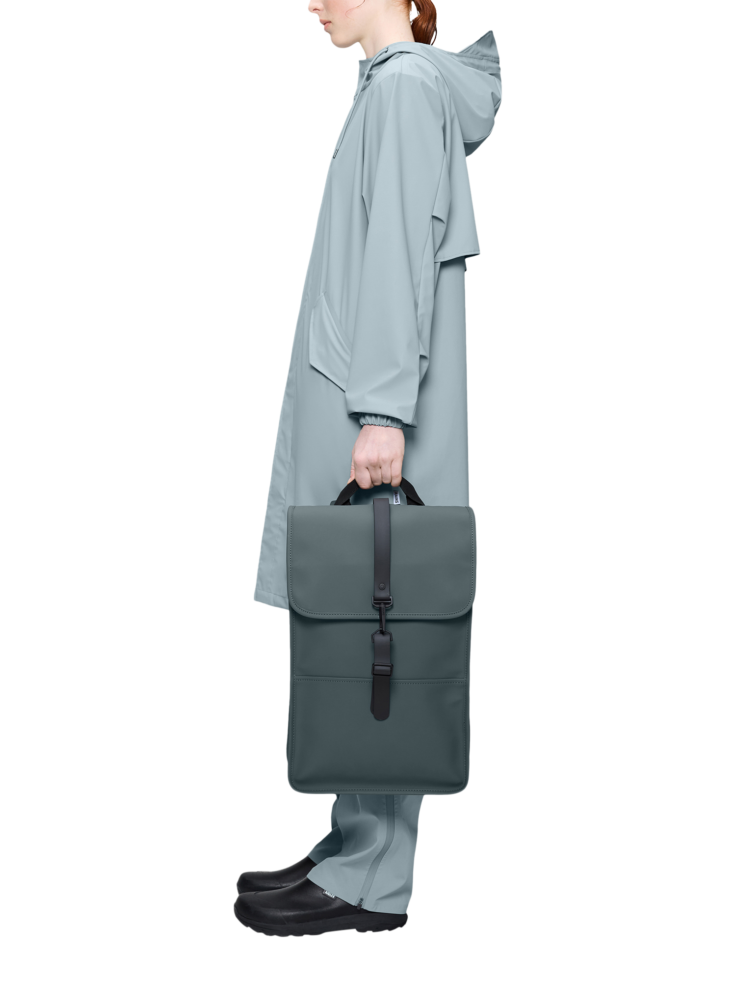 Backpack Mini is cut from Rains' signature PU fabric, engineered for carrying strength, durability and a smooth feel.