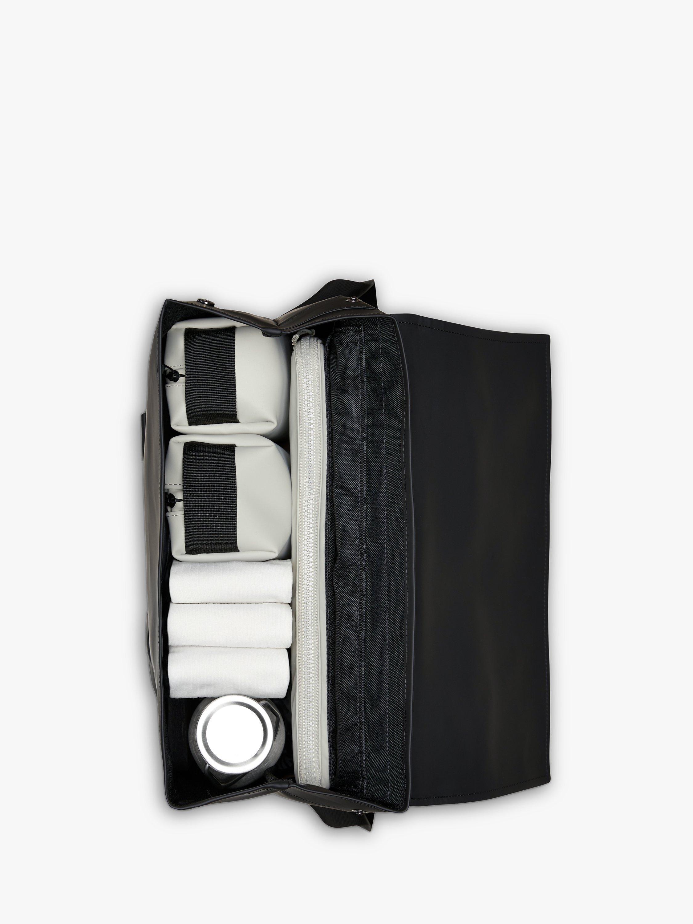 Inspired by the traditional school backpack, this Rains MSN bag is made from a water resistant fabric with a matte finish.