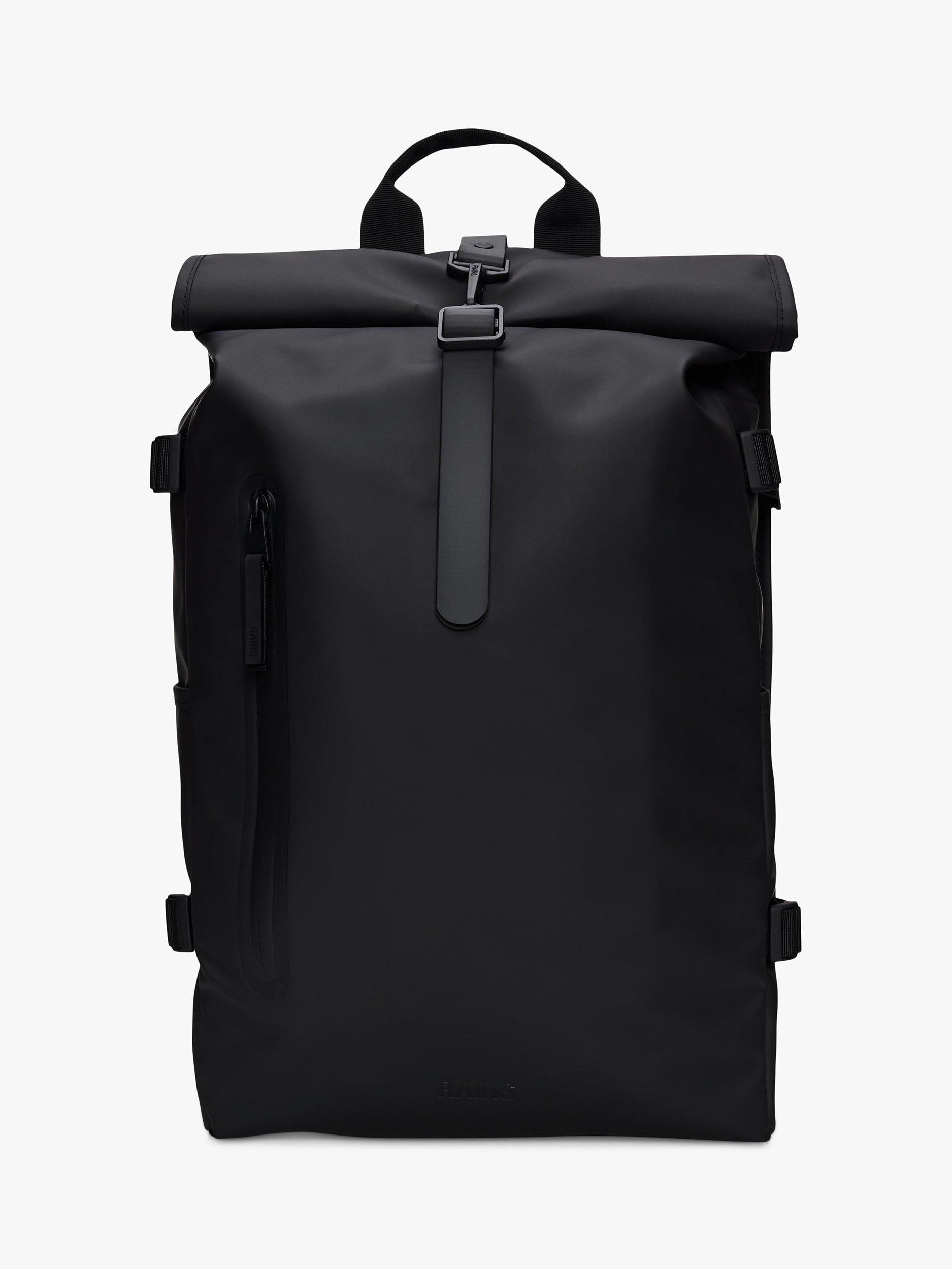 This large roll-top rucksack is made from Rains' signature waterproof PU and features a snap-fastening roll-top with carabiner closure, internal and external organisation, including a laptop sleeve and a padded air-mesh back panel.