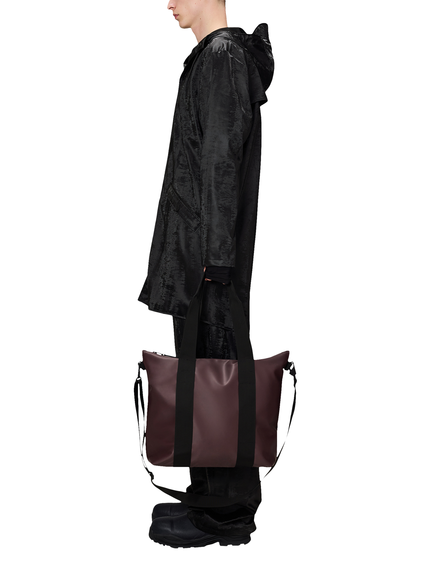 Tote Bag Mini is cut from Rains' signature PU fabric, engineered for carrying strength, durability and a smooth feel.