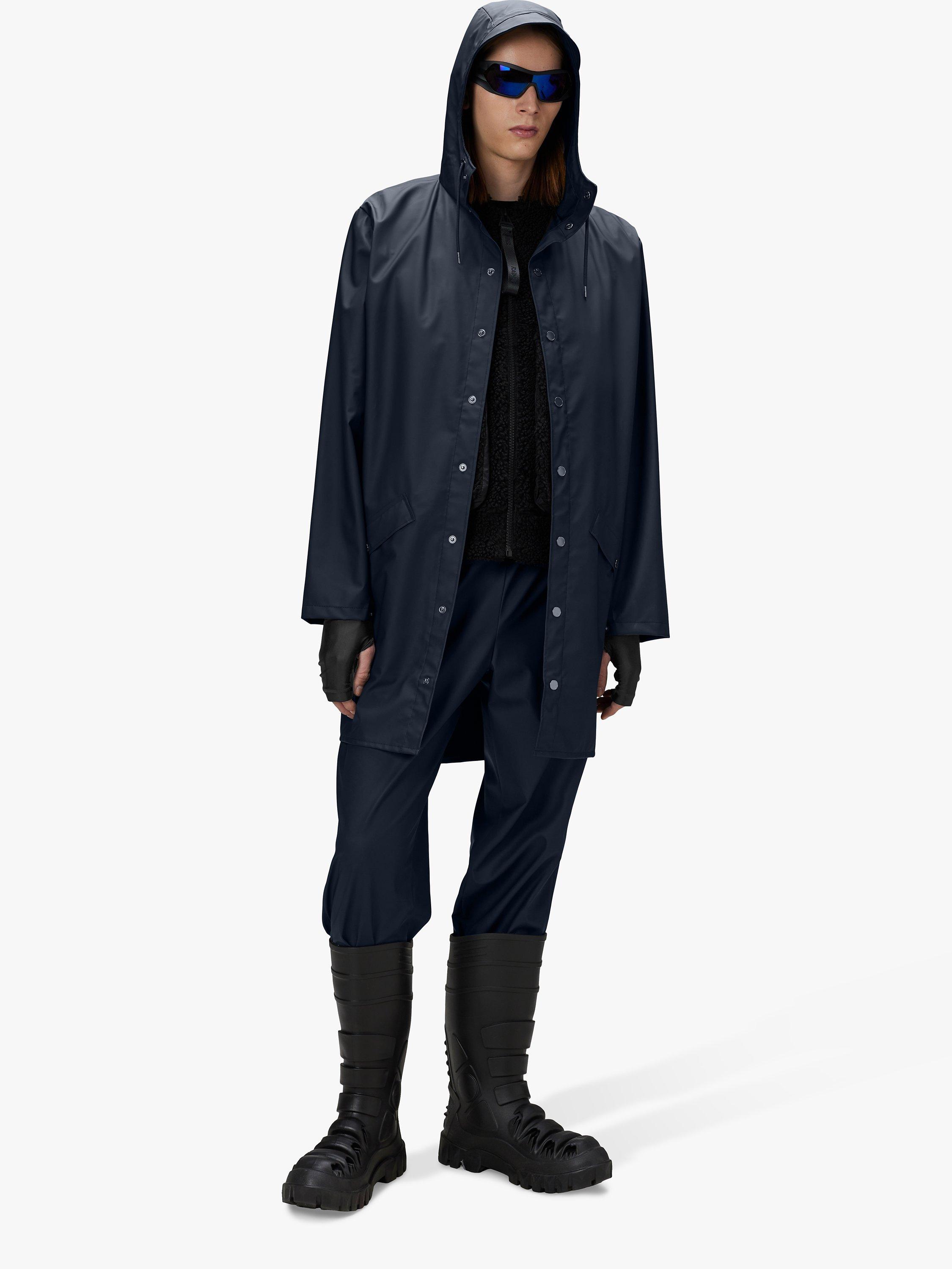 A longer version of Rains' classic design, this ever-contemporary unisex rain jacket delivers high functionality in a minimal silhouette. Features include double welded slanting flap pockets, adjustable cuffs and a fishtail hem. The look is finished with snap fastenings, under-arm eyelets, and a back yoke with concealed vents. This waterproof jacket is cut from Rains' signature PU fabric and features ultrasonically welded seams.