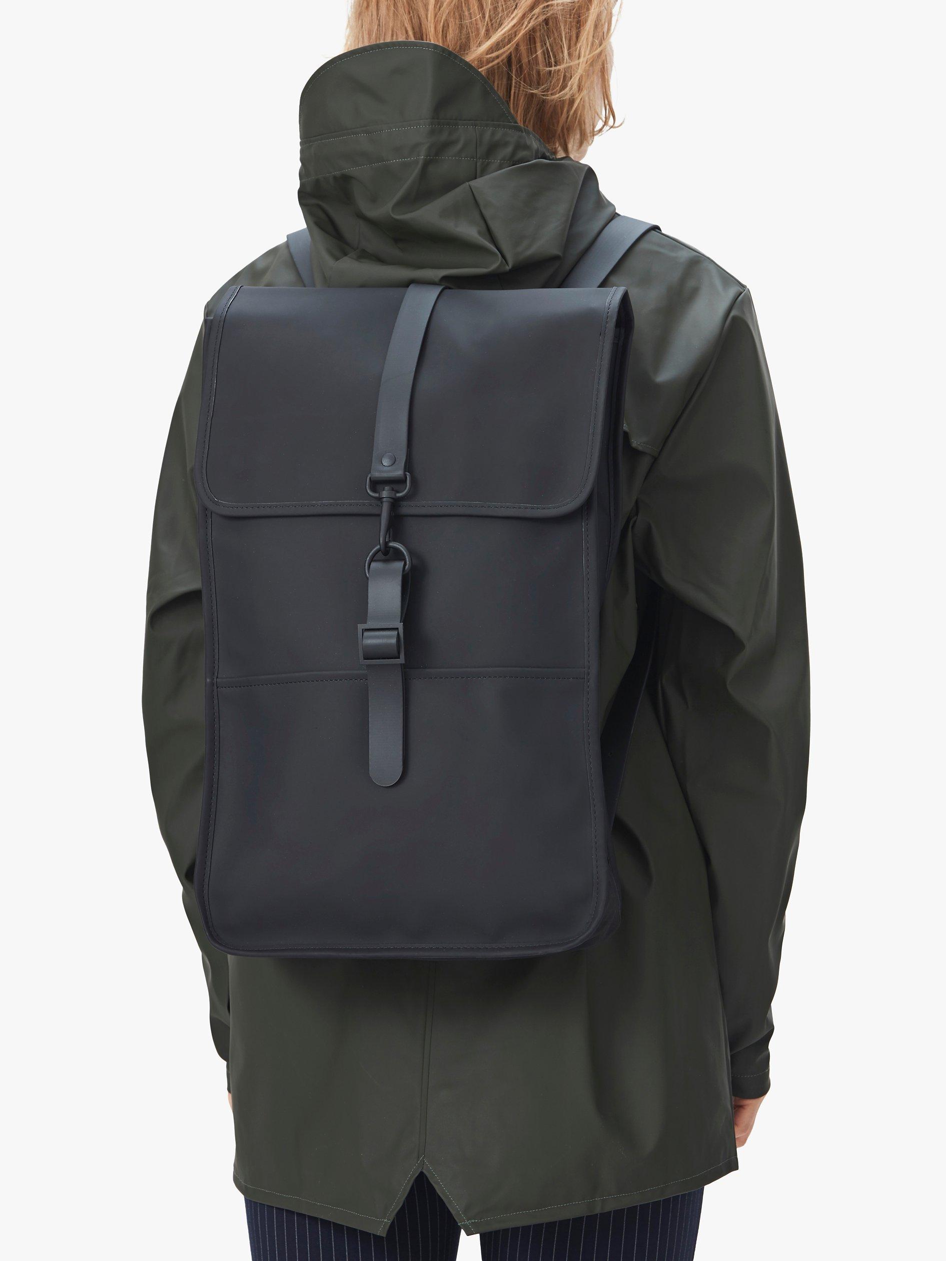 Upgrade your accessories assortment with this Rains Backpack. This modern style is made from a water-resistant fabric and fashions a matte finish.