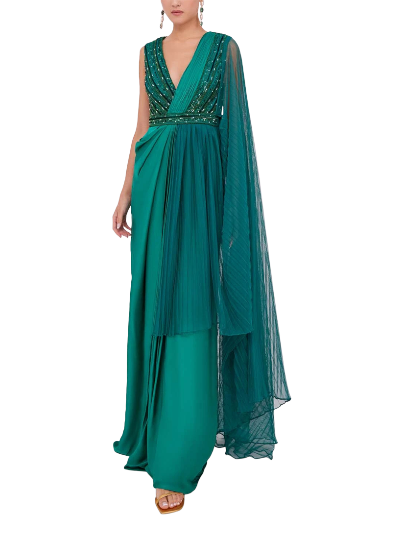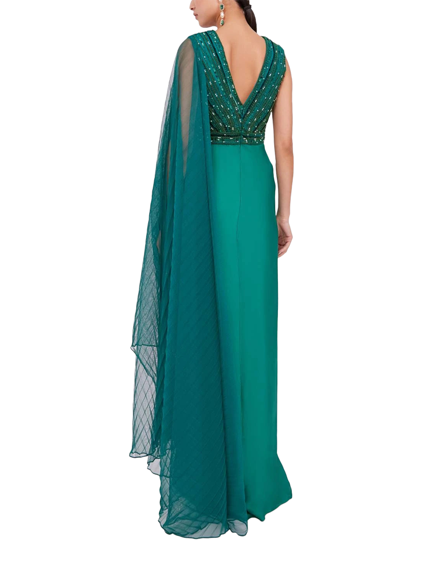RaishmaAnaya Deep V-Neckline Gown, Green