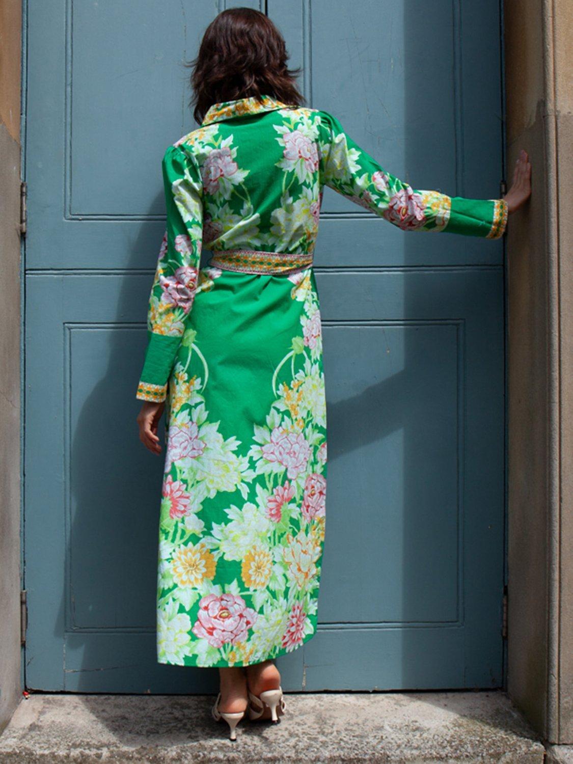 Introducing the Ava Dress, a vibrant addition to your wardrobe. This stunning dress features a lively floral print on a rich background, perfect for any occasion. The belted waist and long sleeves provide a flattering fit, while the high-quality, breathable fabric ensures comfort and elegance. Ideal for both casual and formal events, the Ava Dress is a versatile piece that combines style and sophistication.