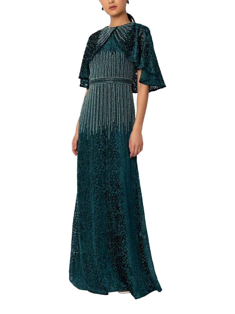 RaishmaHolly Velvet Embellished Flutter Sleeve Maxi Gown, Green