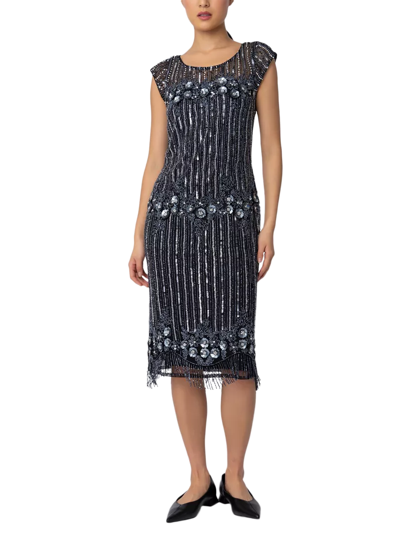 Make a bold statement at your next event with Raishma's Kara dress. Intricately detailed with sequinned vertical stripes, this dress is beautifully hand-embellished with beadwork and sequins for a flattering silhouette.