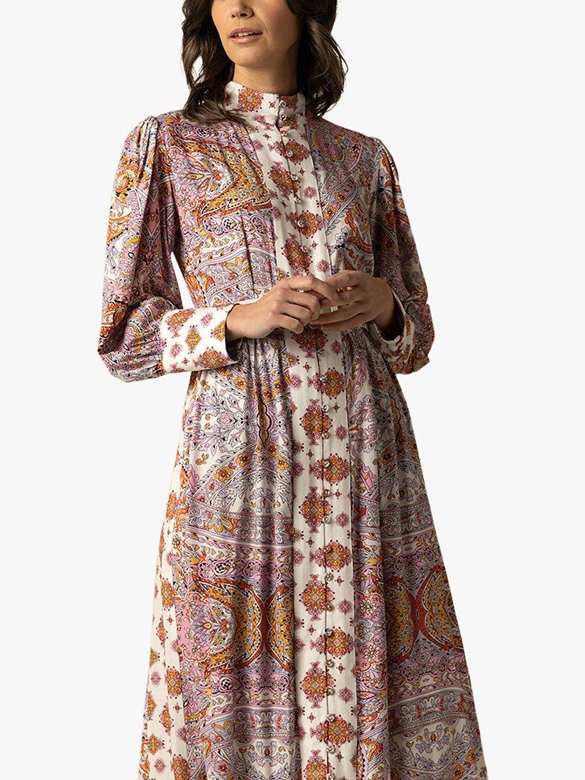 Set in a simple, A-line shape, this floor-length dress from Raishma is blended with cotton. Spotlighting a high neckline and long sleeves, it receives a vibrant update with the help of an abstract print.