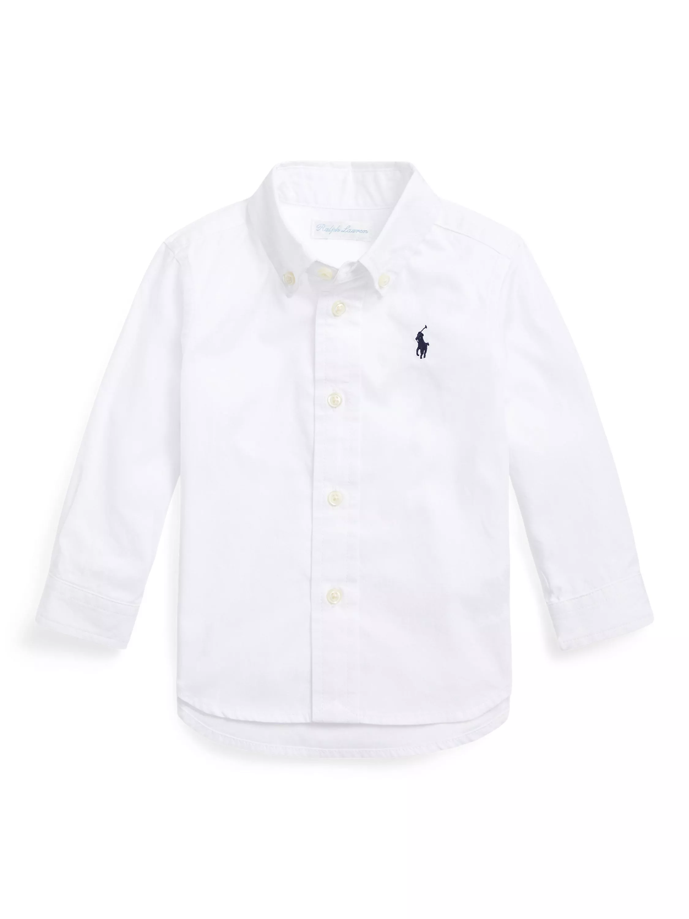Cotton button-down collar shirt with button fastenings at the front and cuff, curved hem, long sleeve and signature Polo Pony motif.