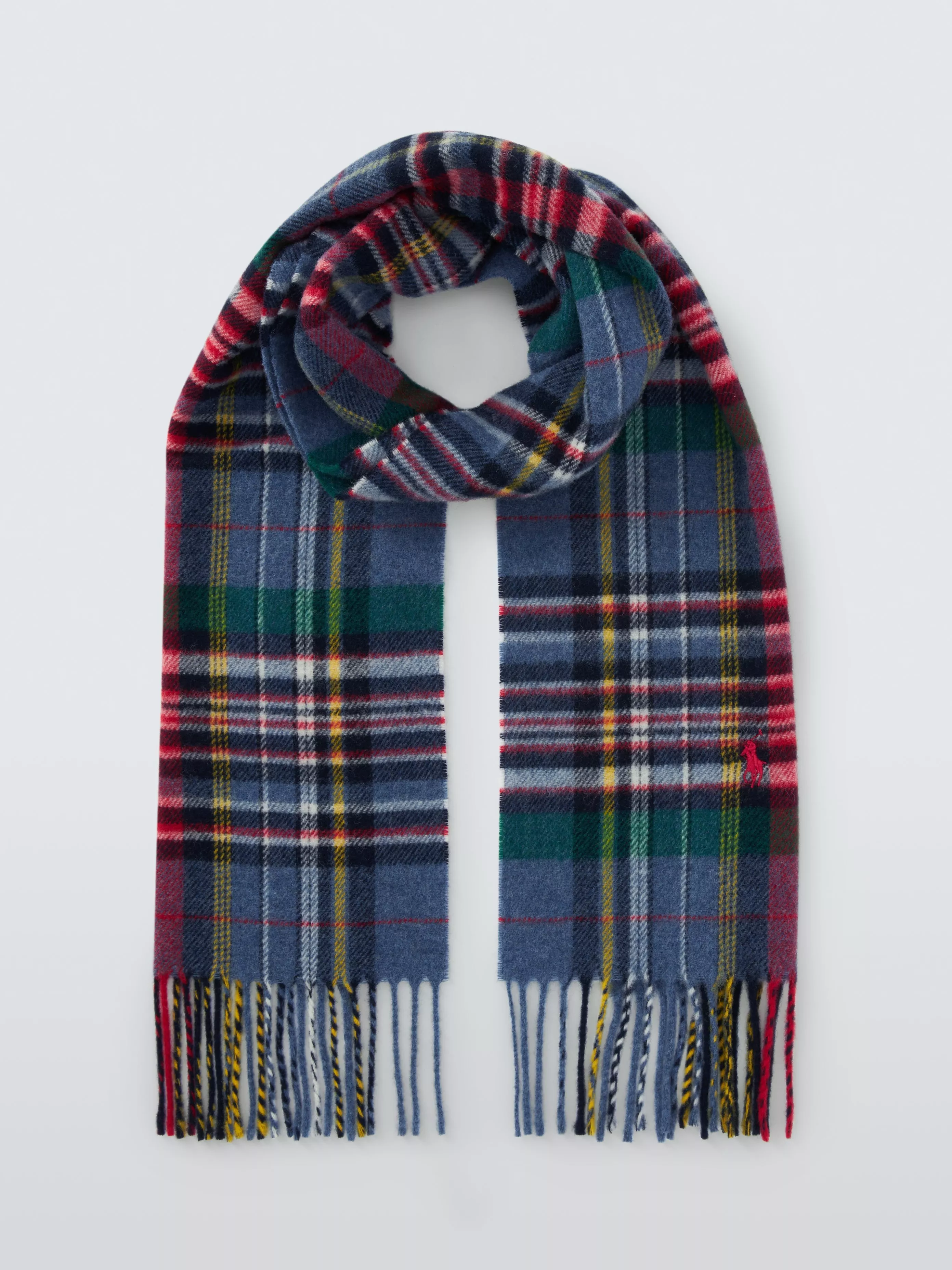 A vibrant check pattern, delicate fringing and the brand's Polo Pony motif all come together to enrich this Italian-made scarf with serious appeal.