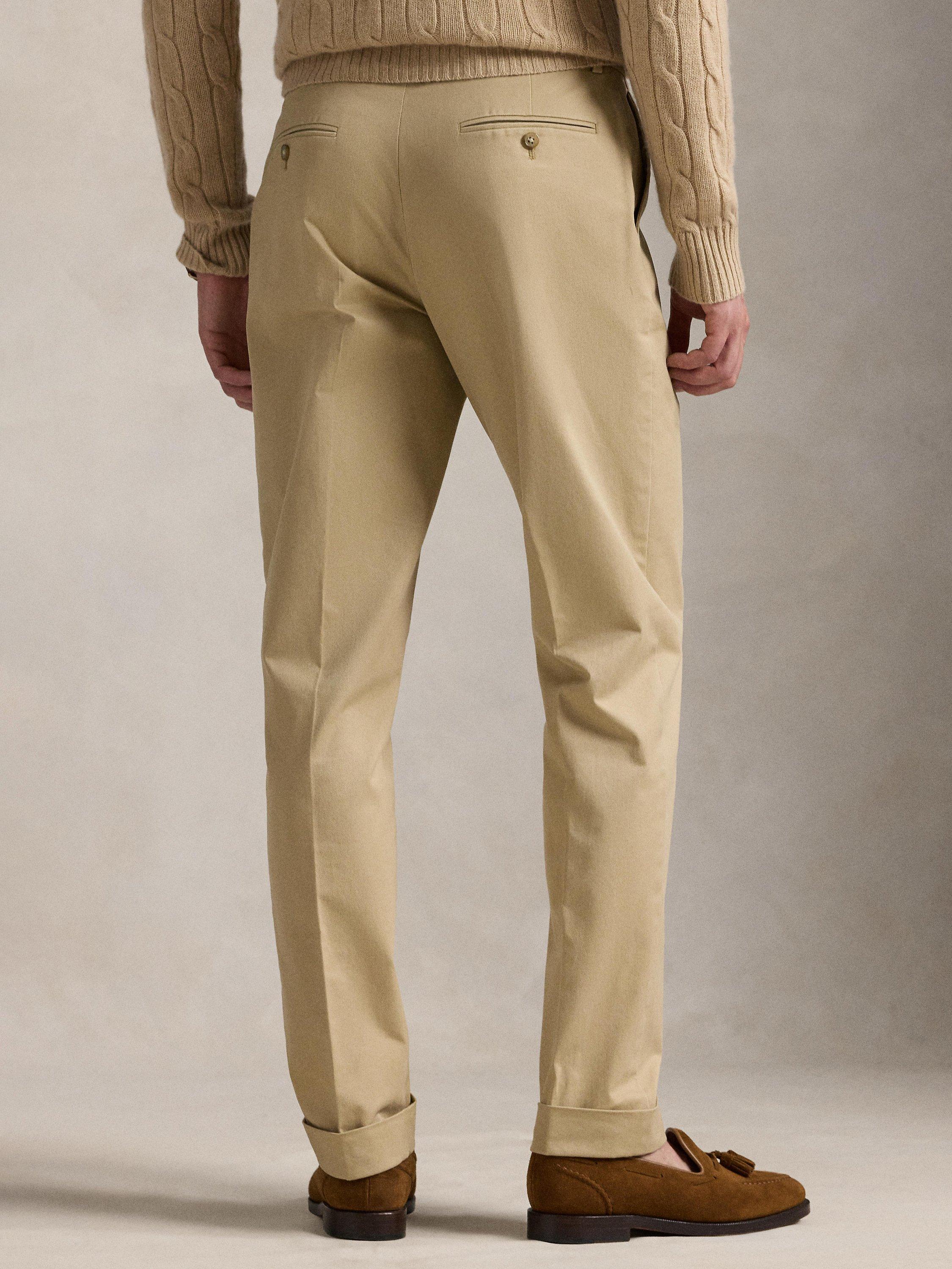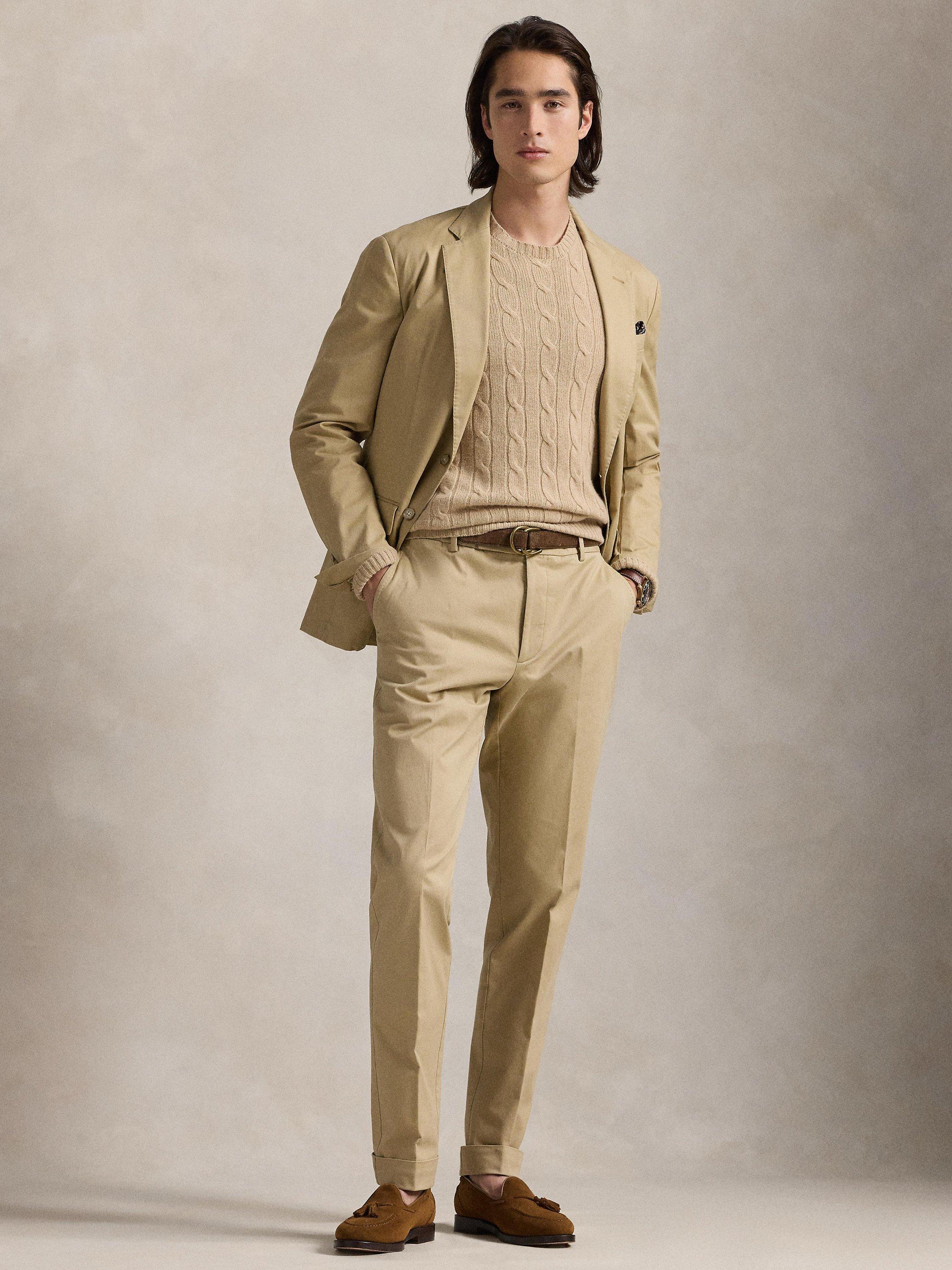 These suit trousers are crafted with custom-developed chino fabric that was woven with extra stretch for added comfort. A special wash combined with a peached process imparts extraordinary softness along with a lightly broken-in appearance.