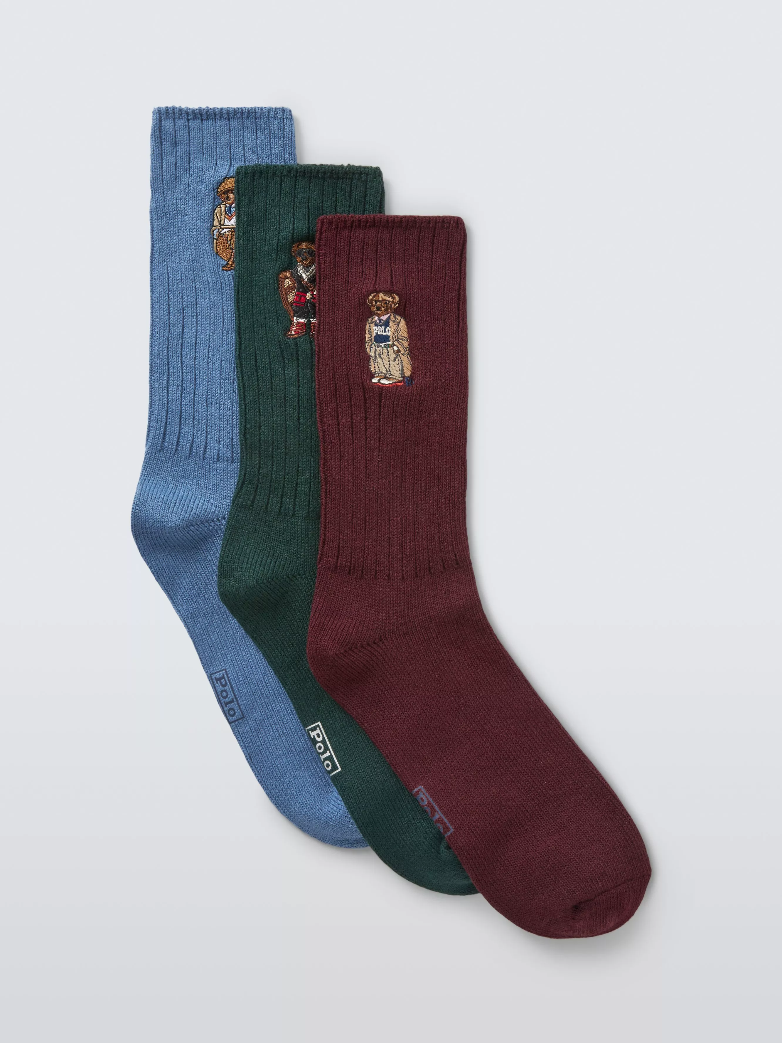 Knitted with substantial cotton-blend yarn for a tactile feel, the classic crew socks in this boxed gift set are embroidered with the Polo Bear dressed in three iconic Ralph Lauren looks.