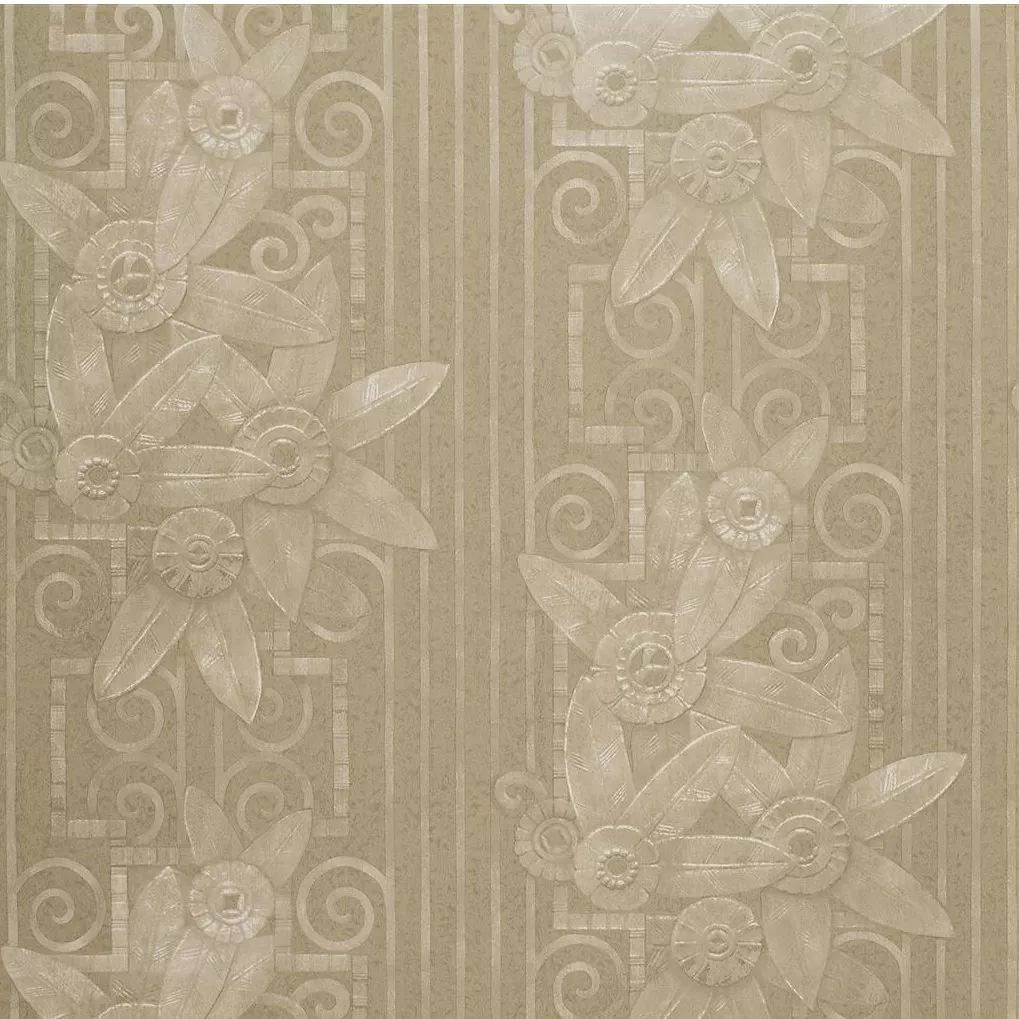 Taking inspiration from Art Déco metal work, this gravure printed non-woven paper captures the nuance of metal patina for a dramatic feature wall.