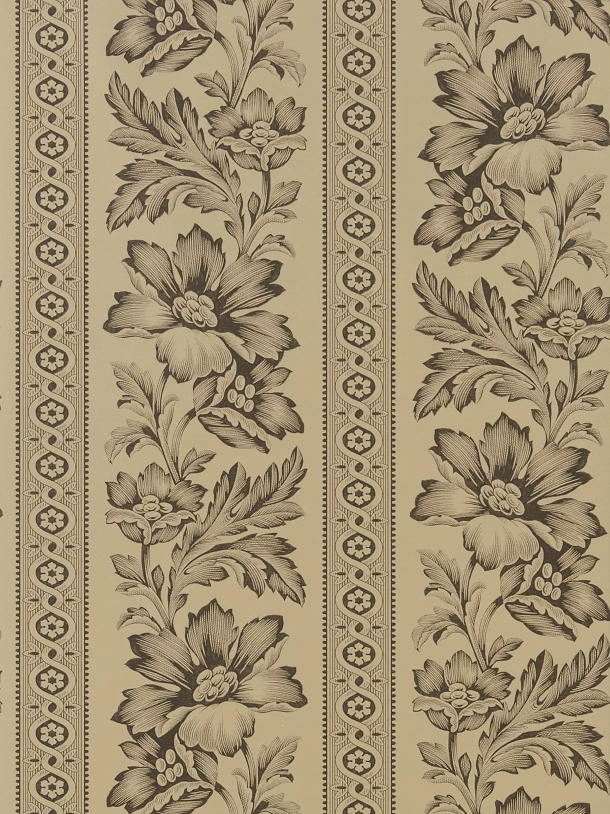 This wallpaper originates from the fabric Gwinnet toile from the Polo version of West Village, which was inspired by an antique document. This design has a great mix of a decorative stripe combined with a more graphic flower creating a very sophisticated and smart pattern. Suits any type of home weather it’s a chic city apartment or a grand country home. Flexo printed onto a smooth non-woven ground for ease of hanging.