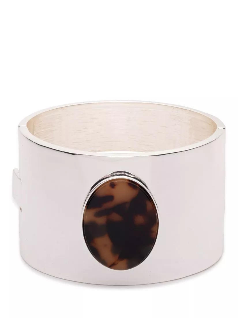 The Heritage silver bangle creates a statement with the added warmth of tortoiseshell detail. A beautful, bold piece, and with a hinge closure, it's perfect worn solo.