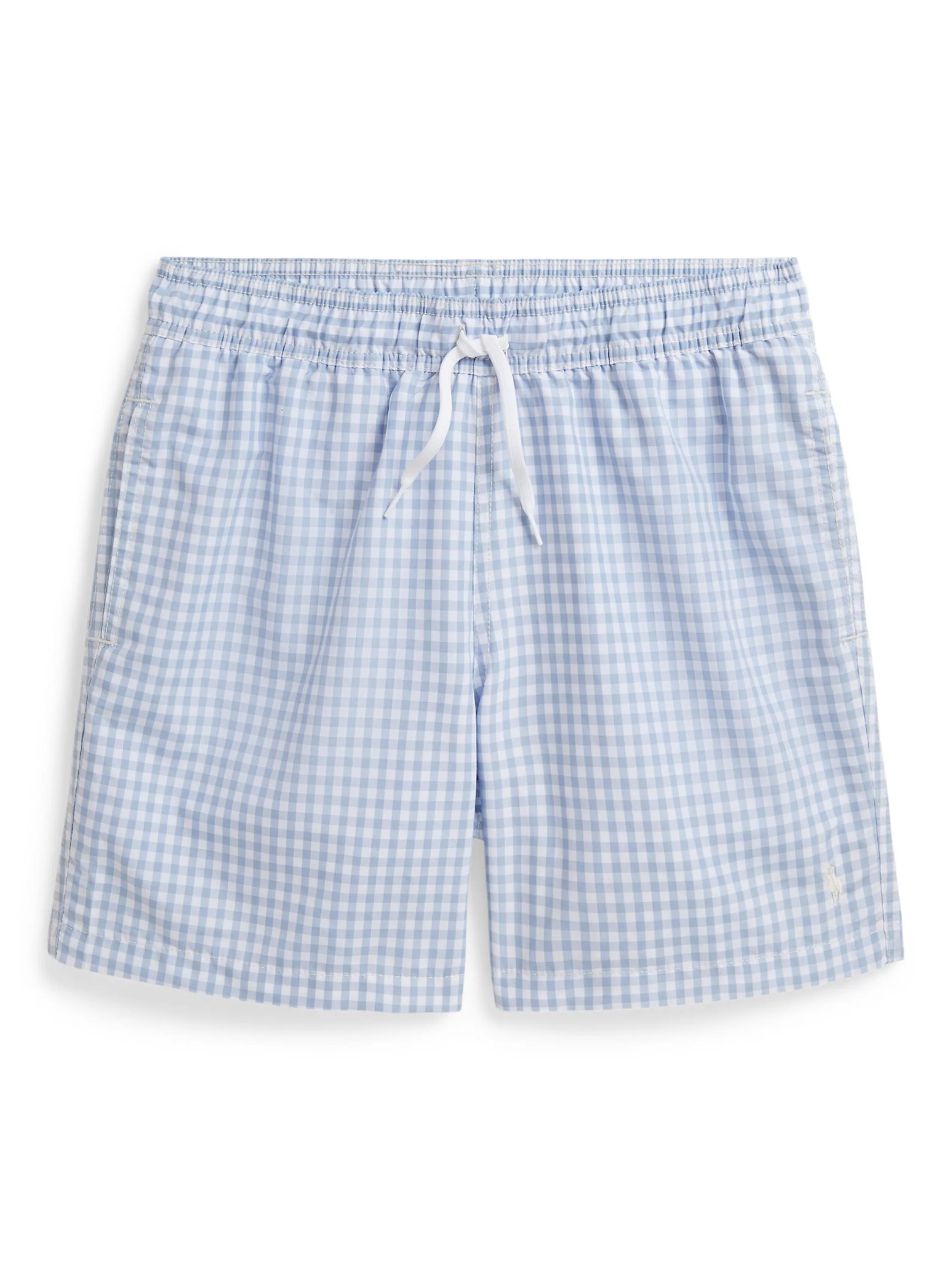 These mesh-lined swim trunks achieve a classic Ralph Lauren look with a gingham pattern and RL's signature embroidered Pony.
