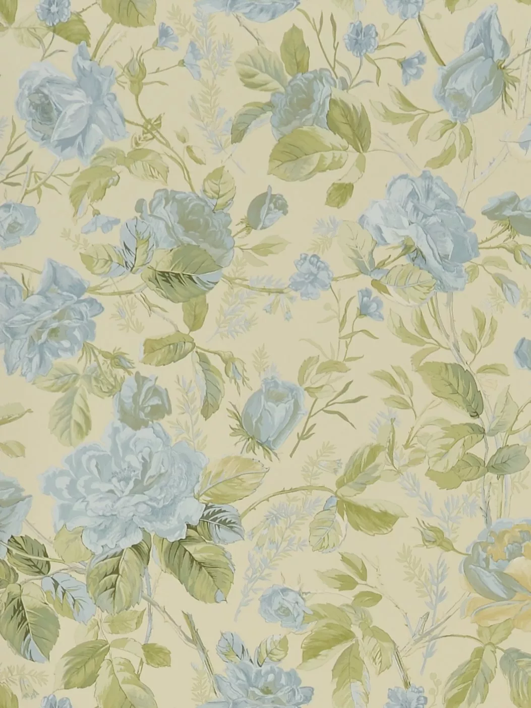 This trailing rose and leaf wallpaper pattern perfectly captures the spirit of an English country garden in full bloom.
