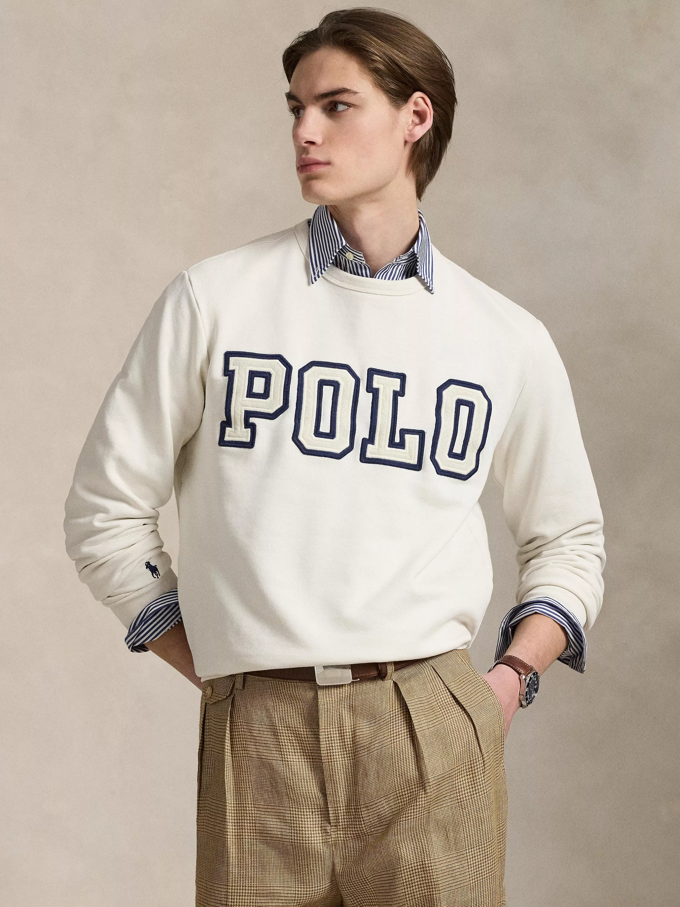 This cotton-blend sweatshirt features a mix of signature Ralph Lauren details — the Polo logo rendered in felt across the chest and the Polo Pony motif at the sleeve.