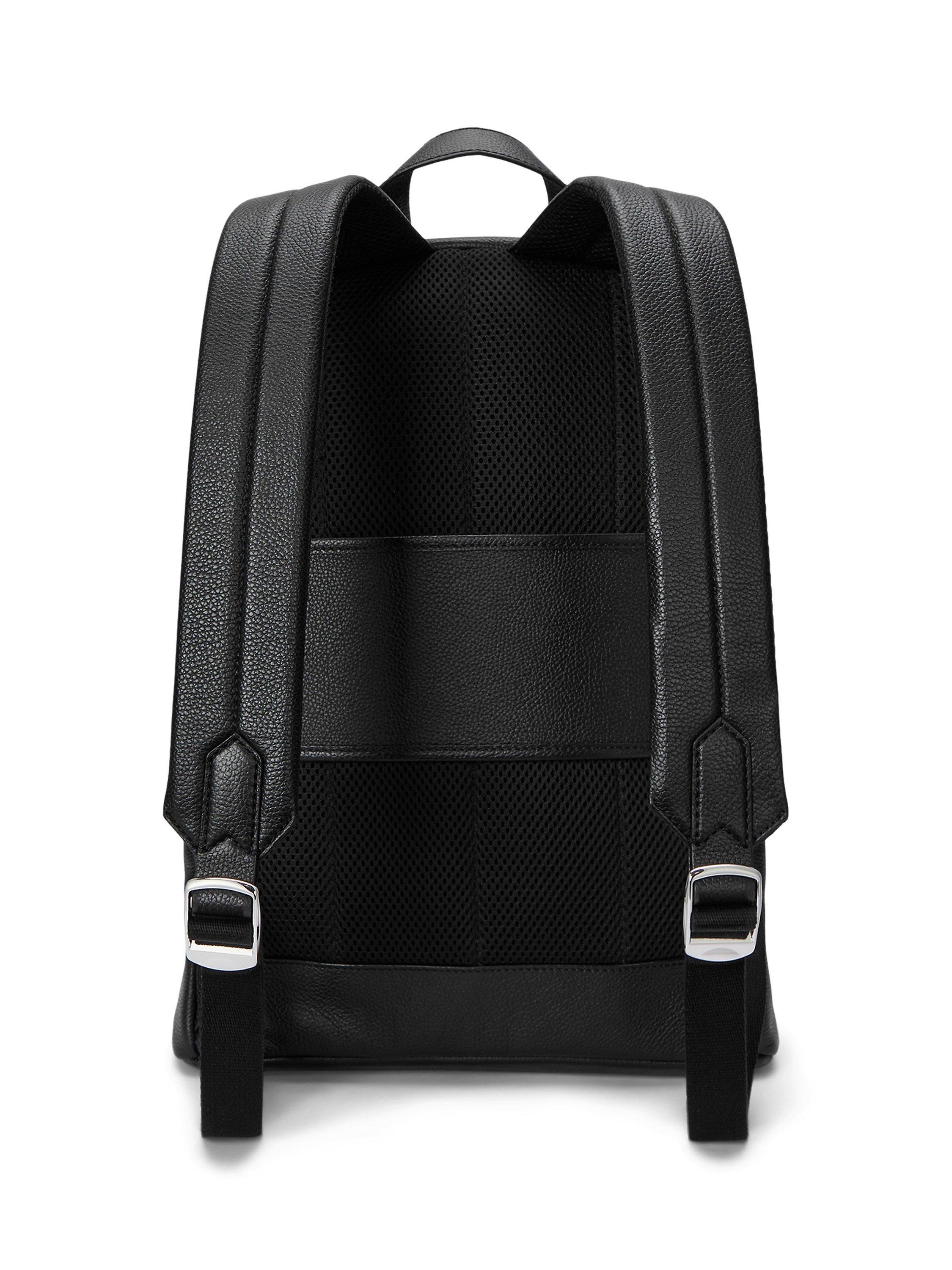 This backpack is made from pebbled leather with an embossed logo detail at the front. It also features a mesh-panelled back for added comfort.