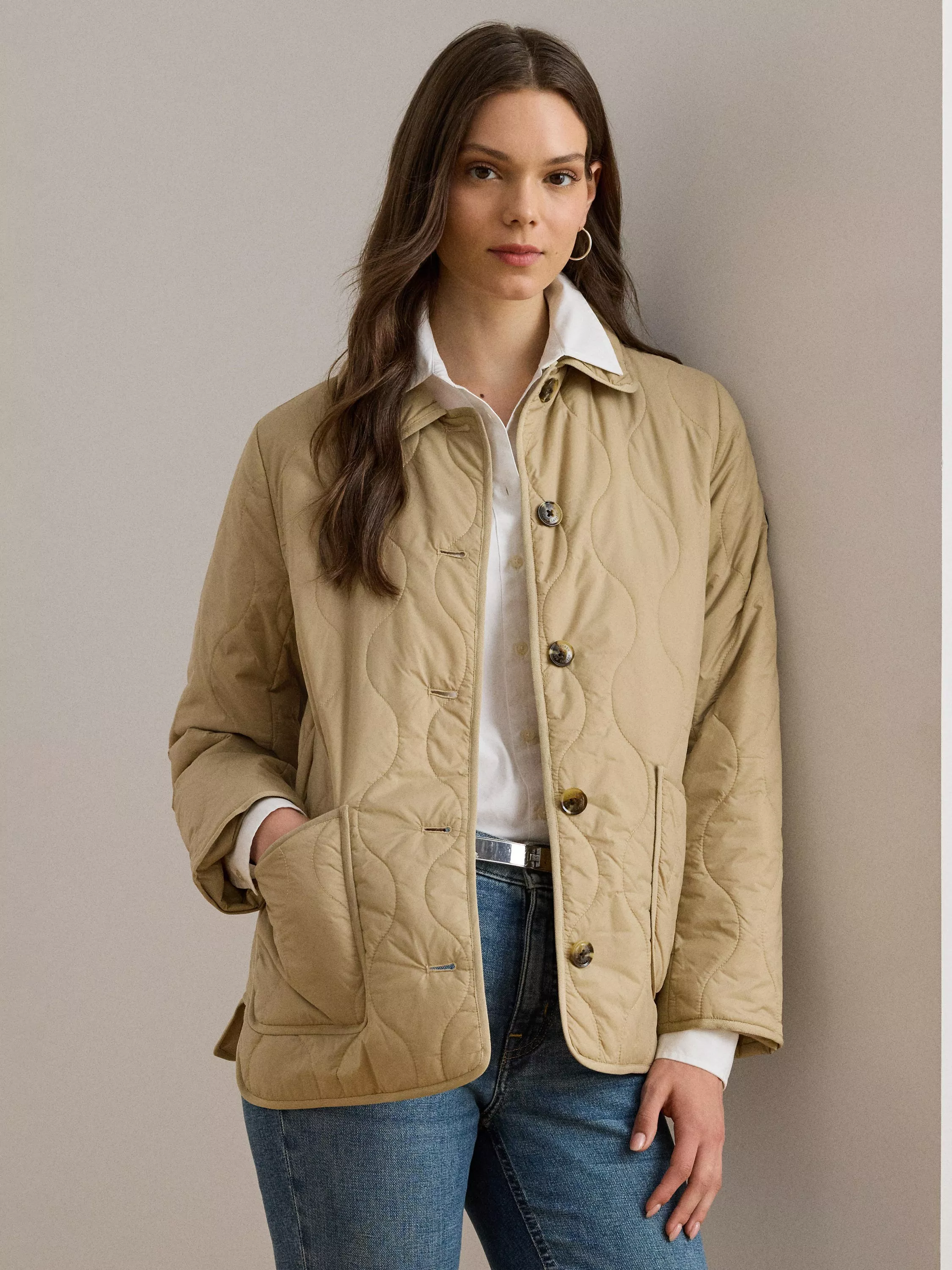 Crafted from quilted nylon, this Ralph Lauren coat is designed with a classic spread collar, button fastenings and side pockets.