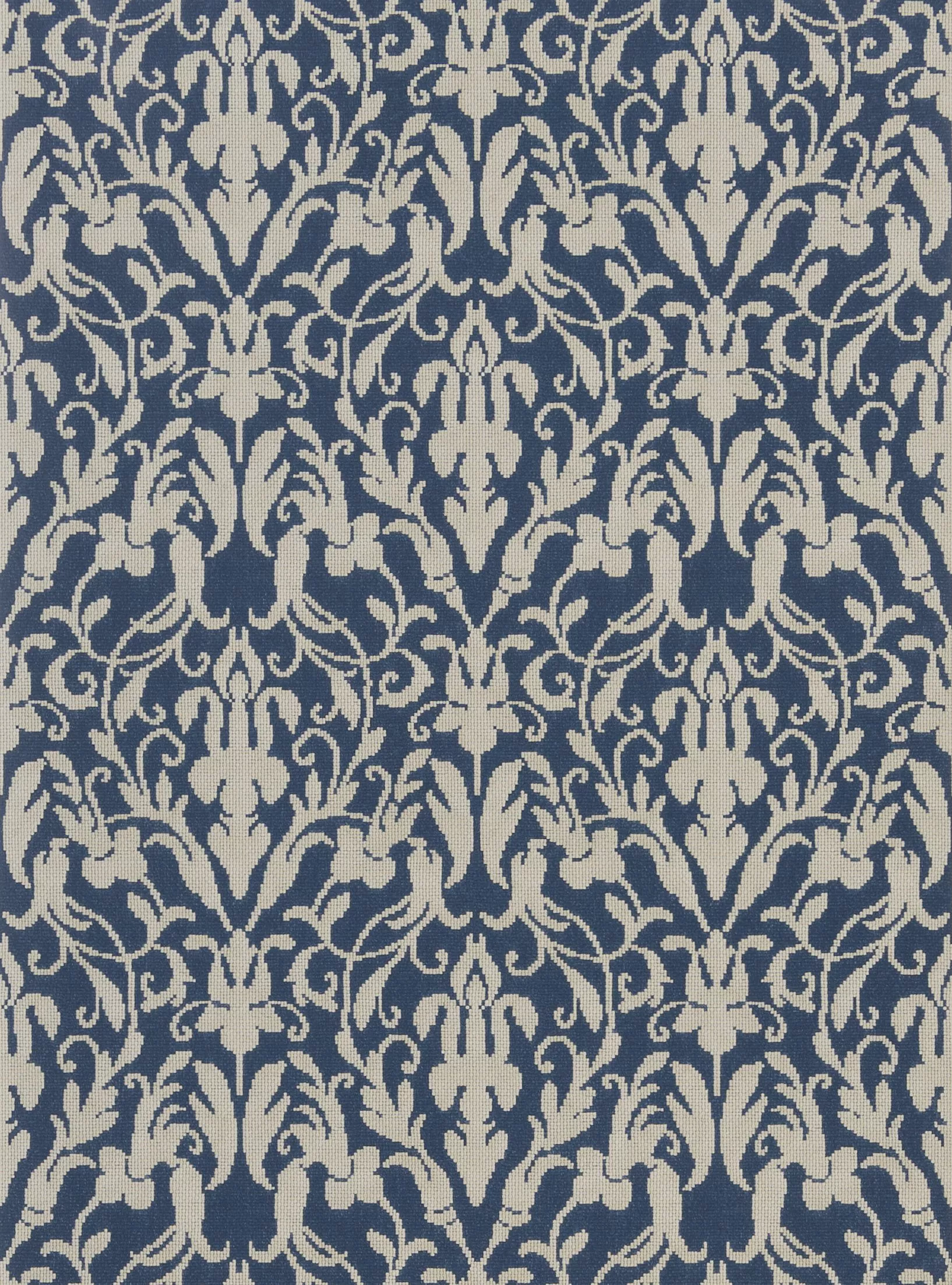 Inspired by needlepoint designs, this damask alludes to the decorative wallpaper that may have appeared on the walls of a speakeasy or an upholstered chair in a Victorian manor. Taking its look from the fabric with the same name from the Polo version of West Village once on the wall it gives you a feel of a paper backed fabric. Printed onto a smooth non-woven ground for ease of hanging.