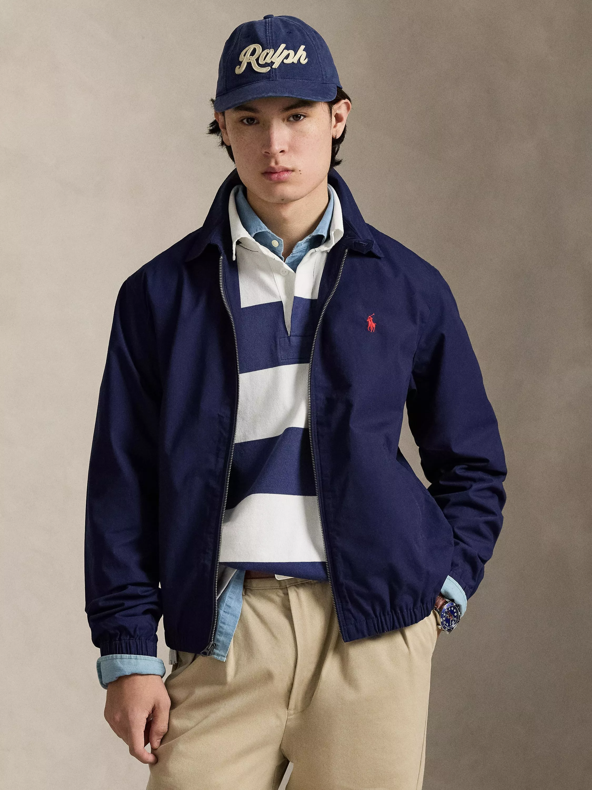 This practical outerwear design features a classic collar and a zip-fastened front for greater adaptability. Upon closer inspection, you will also find the brand's Polo Pony motif resting in its rightful place.