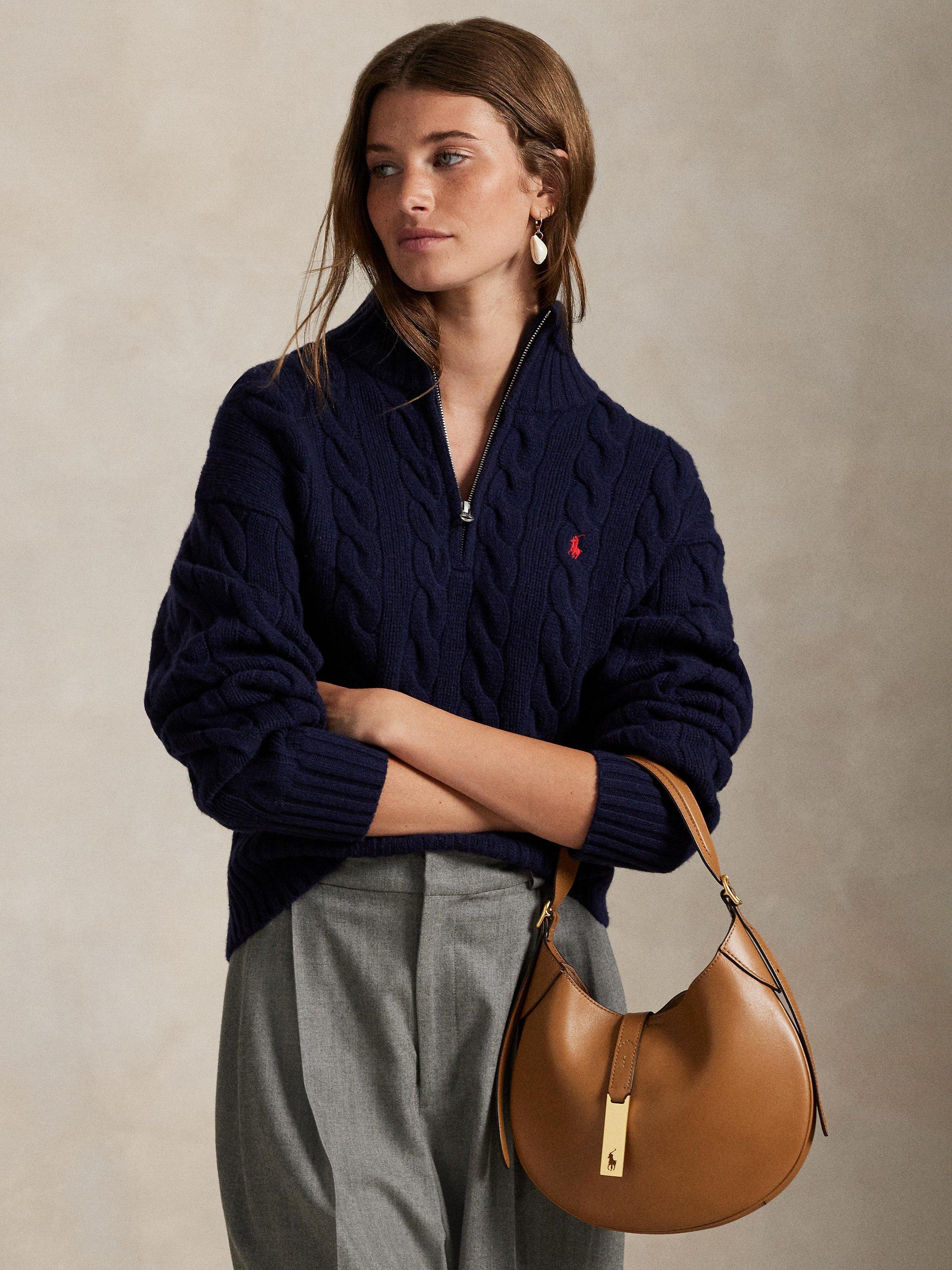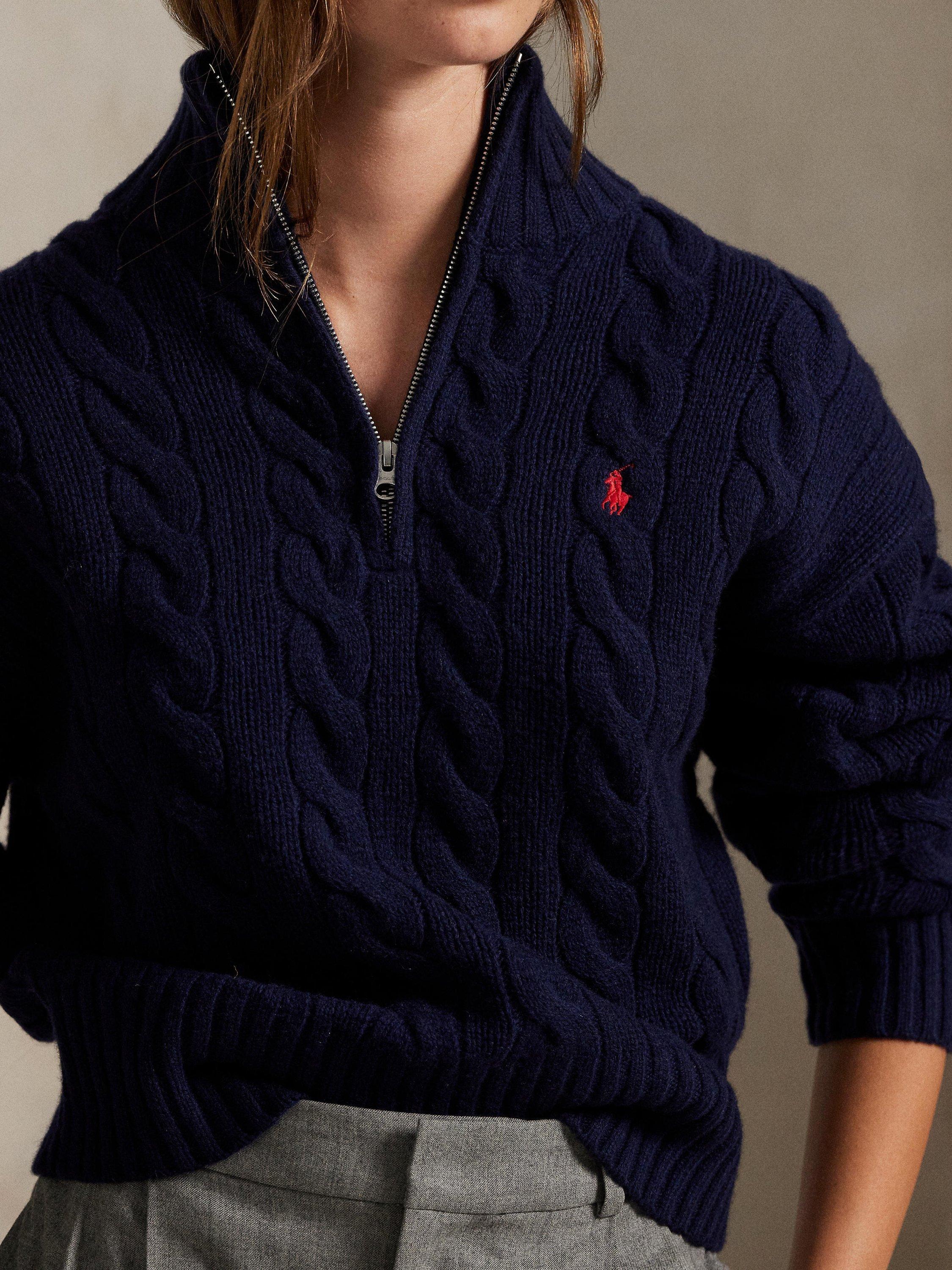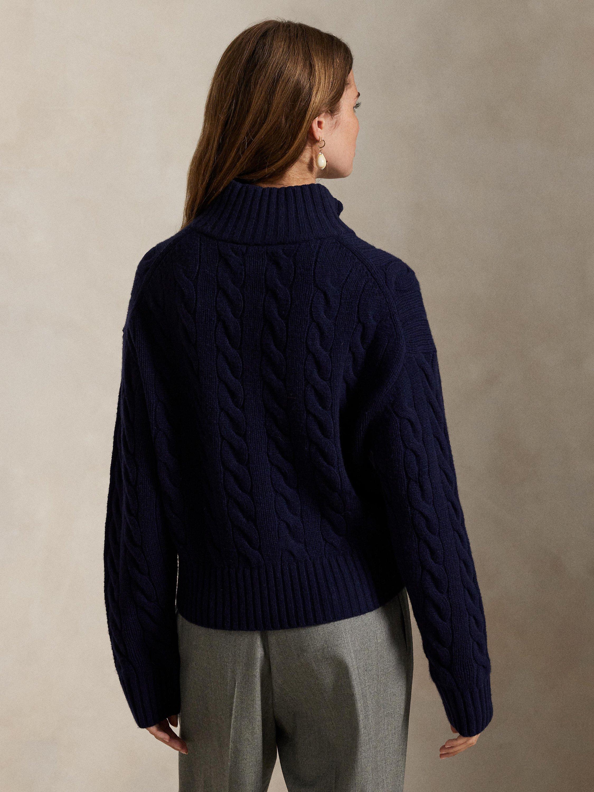 Ralph LaurenWool Blend Cable Knit Relaxed Half Zip Sweater, Navy