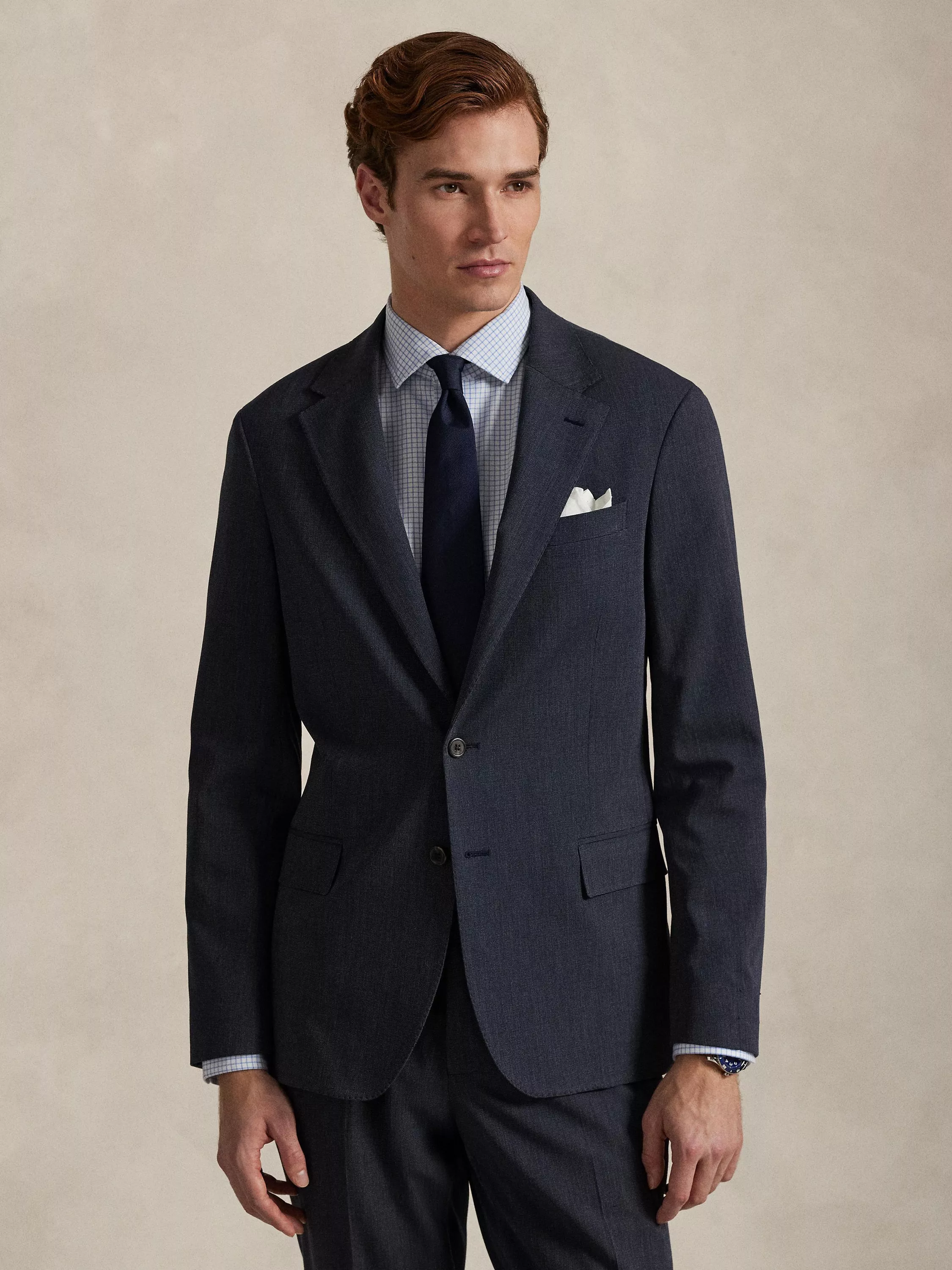 Ralph Lauren's Polo suit jacket offers more structure in the chest and shoulders, along with full lining. This nailhead version is tailored from a fabric that was custom-developed for natural wrinkle resistance and a smooth, shine-free finish. Added stretch provides extra comfort.