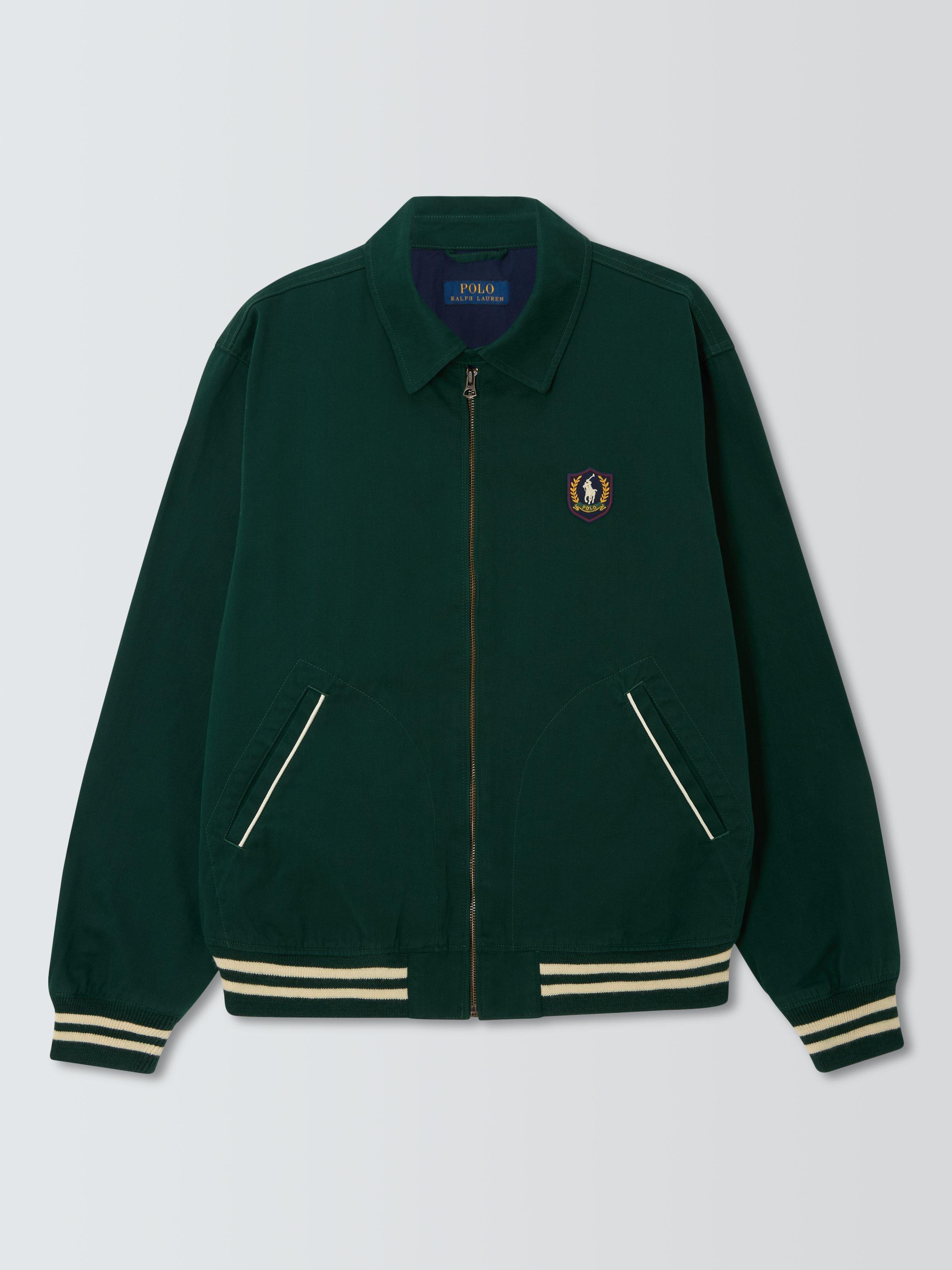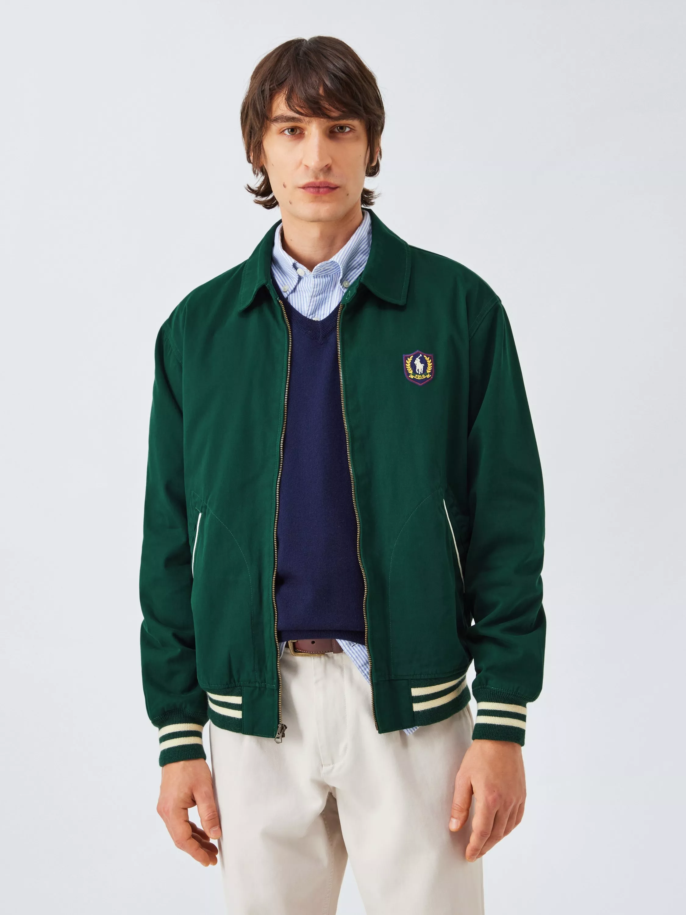 With its sporty silhouette and cotton twill construction, this jacket merges timeless athletic style with heritage craftsmanship. The vintage collegiate–inspired patch at the left chest also features archival artwork along with the iconic Polo Pony motif.