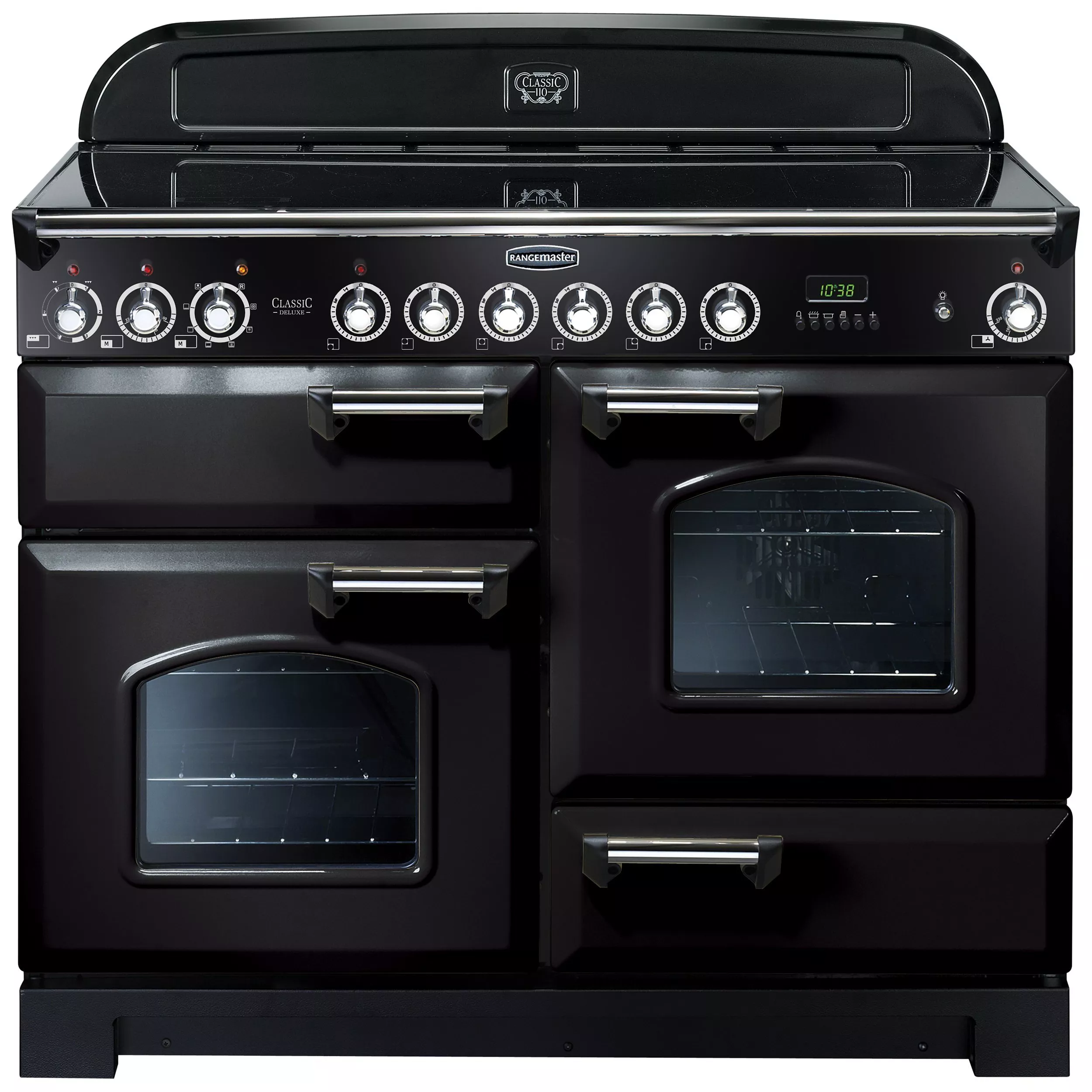There’s 1 multifunction oven and 1 fan oven. Both have programmer/timers, and the main oven offers 8 different settings including Rapid Response (the oven heats up 30% faster than conventionally). There’s also Rangemaster’s innovative Handyrack which makes it incredibly easy to access any roasting trays. The separate grill features a glide-out action to make tending to your dish easier and more secure. The cooker is also height adjustable and has catalytic stay-clean liners. A handy storage drawer is on the bottom right hand side, perfect for keeping utensils or crockery warm.