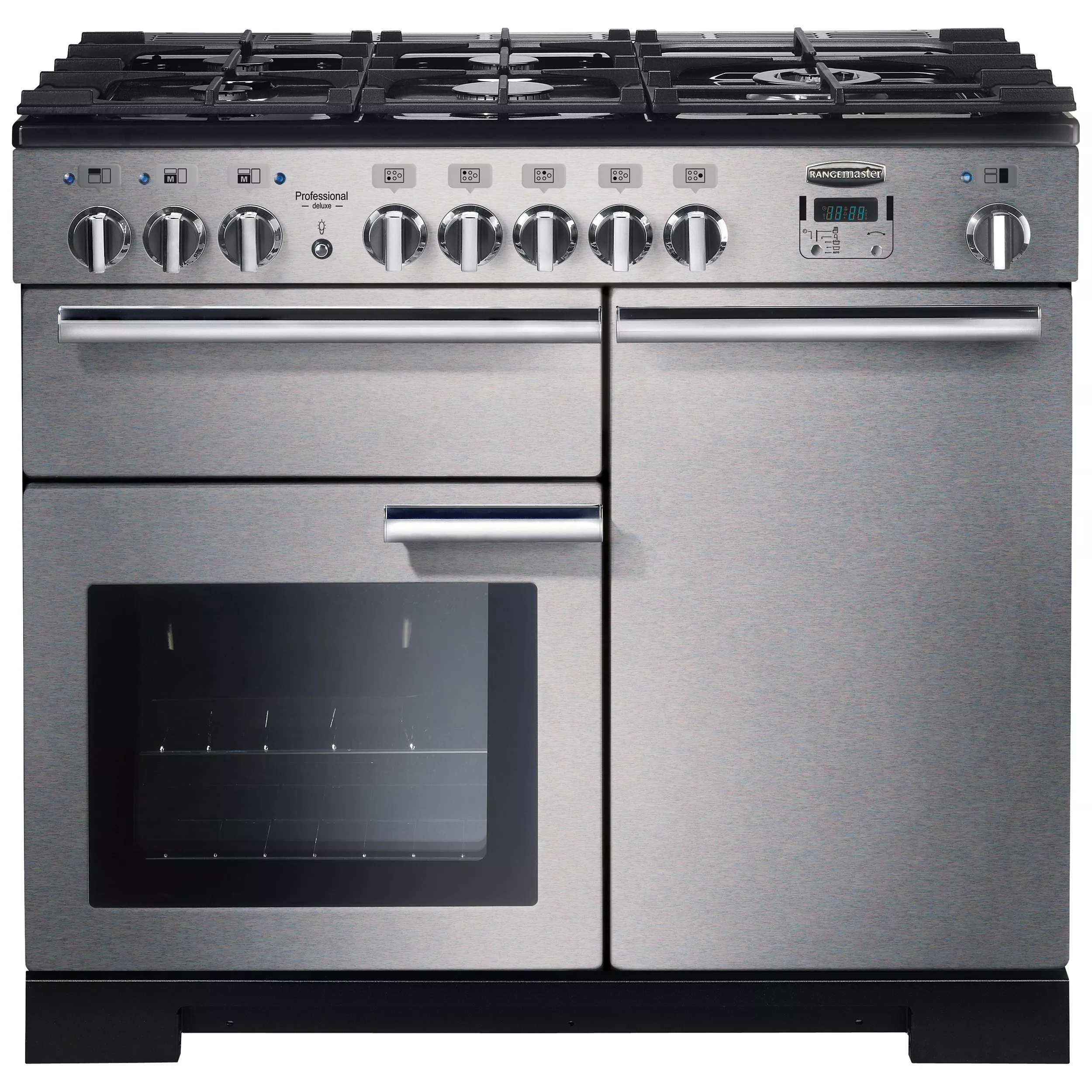 RangemasterProfessional Deluxe 100 Dual Fuel Range Cooker, Stainless Steel/Chrome Trim
