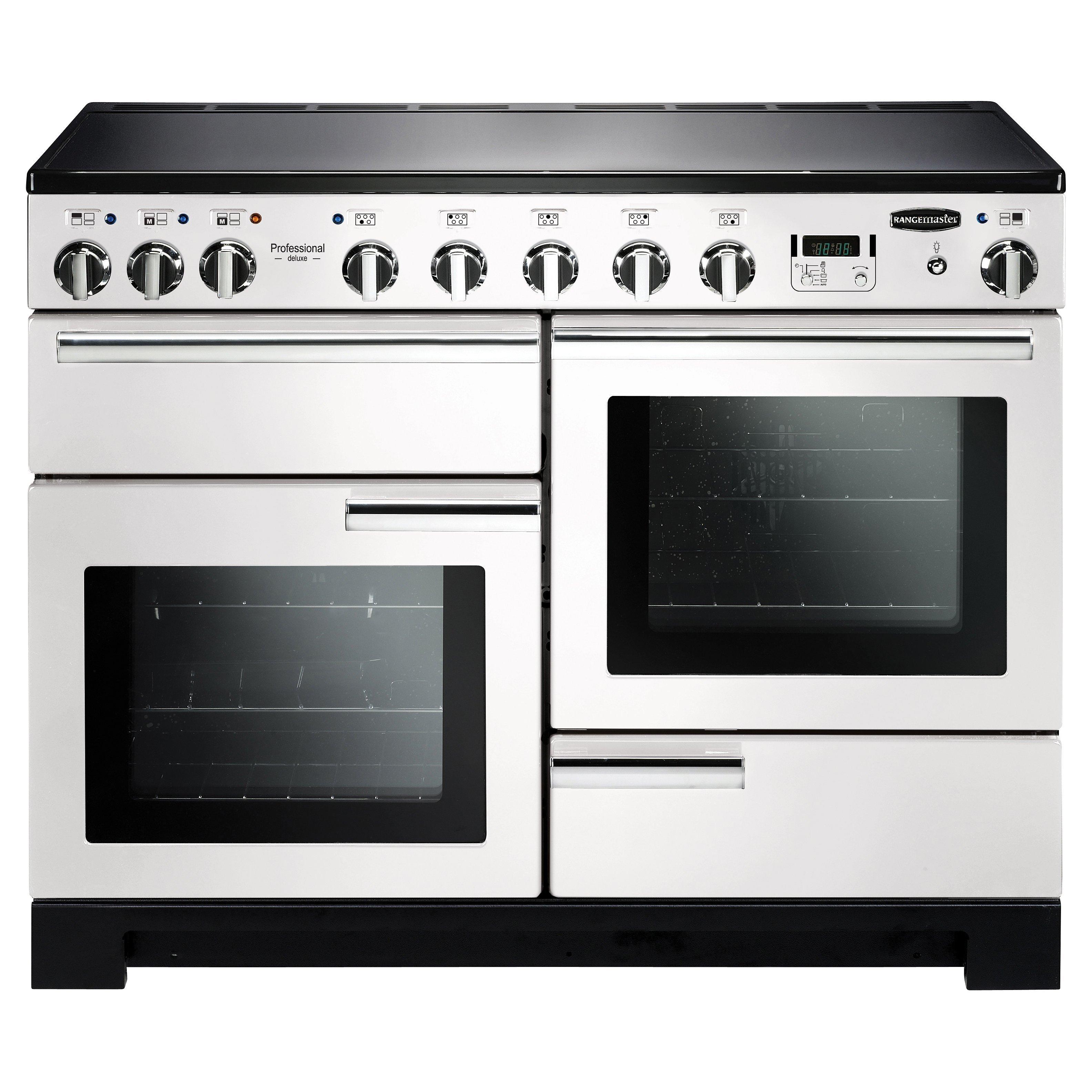 RangemasterProfessional Deluxe 110 Induction Hob Range Cooker, White/Chrome Trim