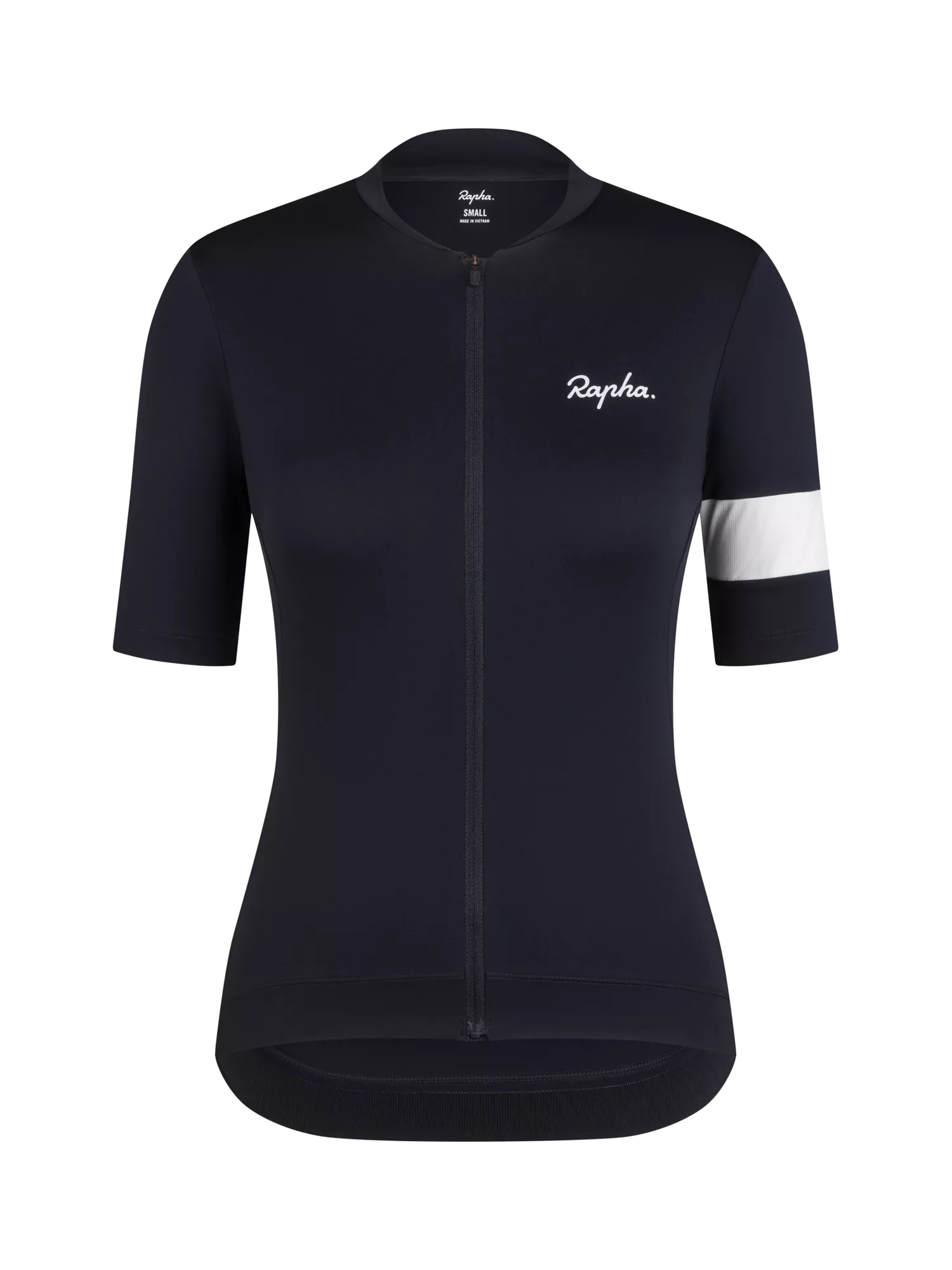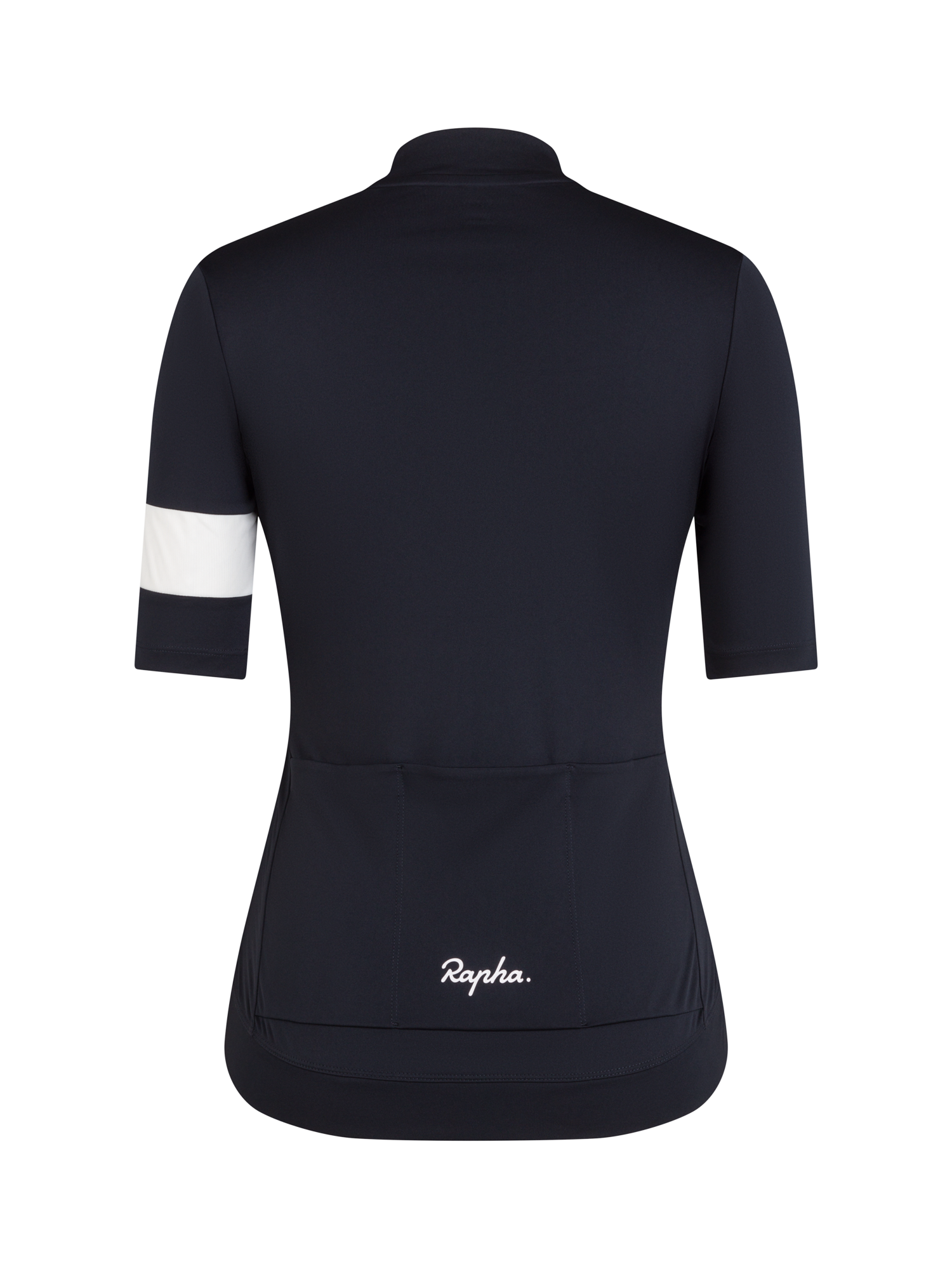 An updated version of Rapha's jersey that sets the standard in everyday performance and comfort, built for everyday use training, riding and commuting. Designed with set-in sleeves for on-bike comfort, and debossed stripe detailing to armband. Crafted with fabrics developed specifically by Rapha to offer excellent moisture management when worn worn next to the skin or with a base layer.