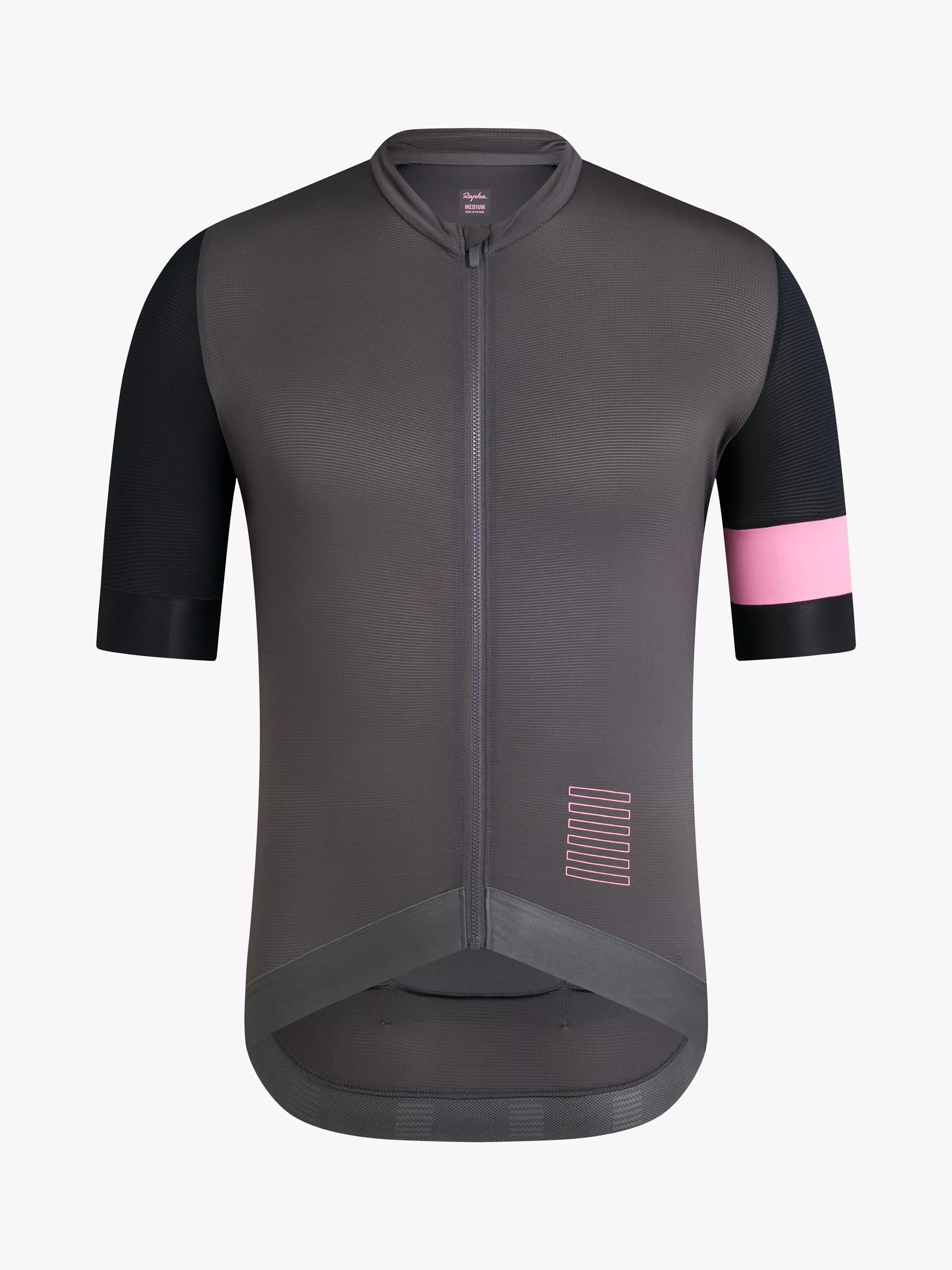 The latest addition to the Pro Team collection, Rapha's Training Jersey is made with a lightweight, open-structured fabric on the front panels for wicking and breathability. On the back, a close-knit fabric provides added sun protection and improved support for full pockets. A thicker elastic trim on the pockets keeps the contents secure, and a gusset at the bottom expands to add extra volume.