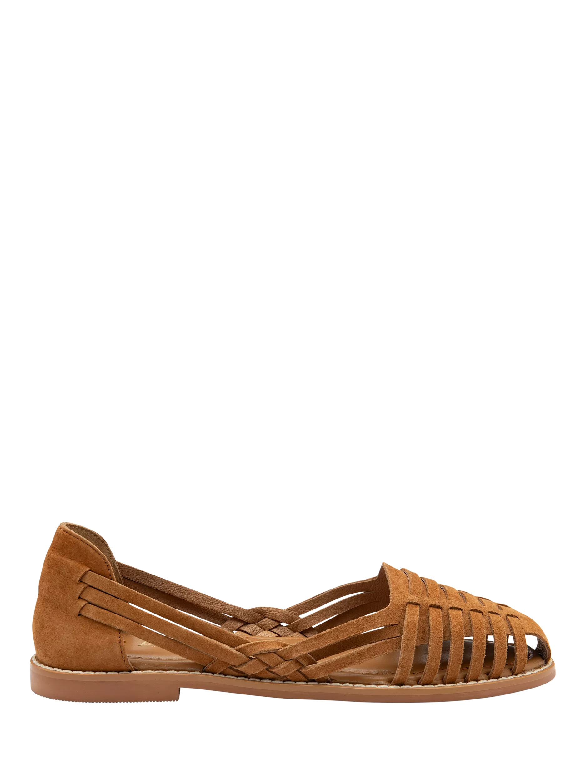 Introducing Batley, a Huarache-inspired suede shoe from Ravel. Constructed with soft suede straps, this striking women's sandal offers a blend of timeless style and boho charm. This almost flat, open-waisted silhouette is crafted with a leather in-sock and leather lining to ensure it delivers the utmost comfort.