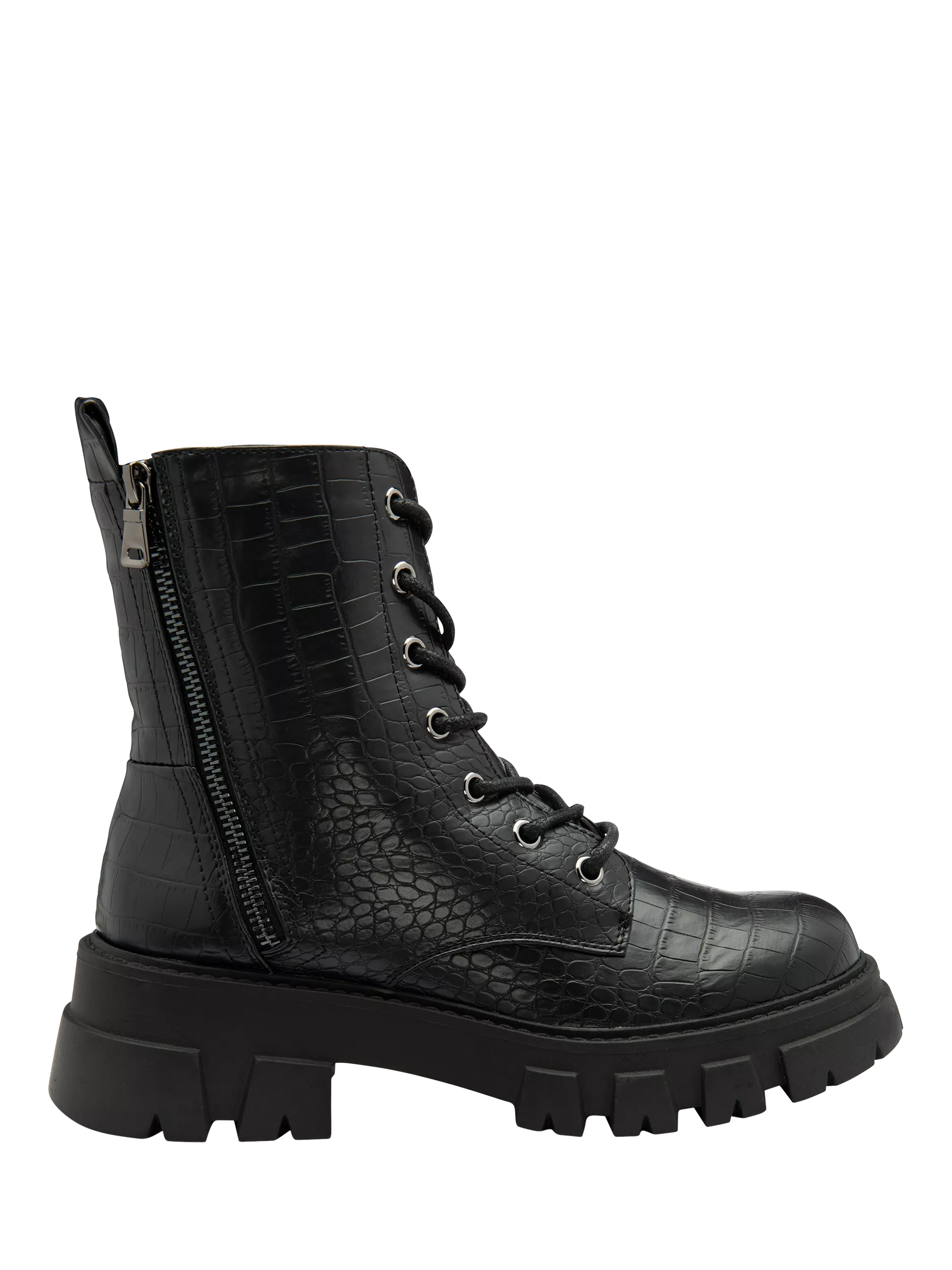 Own the spotlight in these croc-effect ankle boots by Ravel, made to deliver standout style with serious edge.