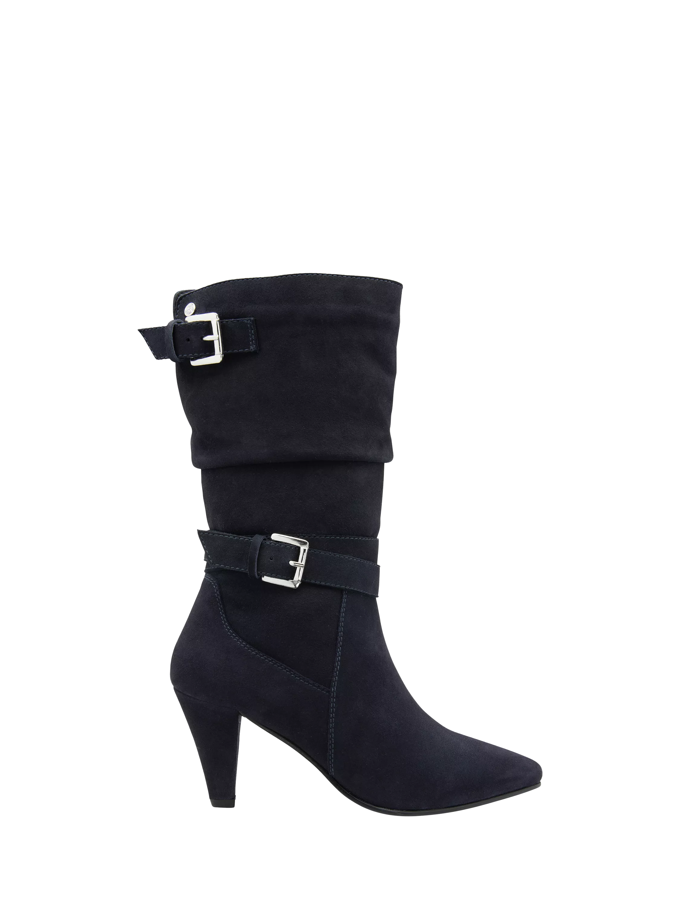 Complete your outfit with these suede mid-calf ruched boots from Ravel. With buckle detailing to the top collar and ankle, the Guise suede boots have a triangular 8cm heel and an almond toe. A great pair to have on hand when you want to make a chic yet subtle fashion statement.