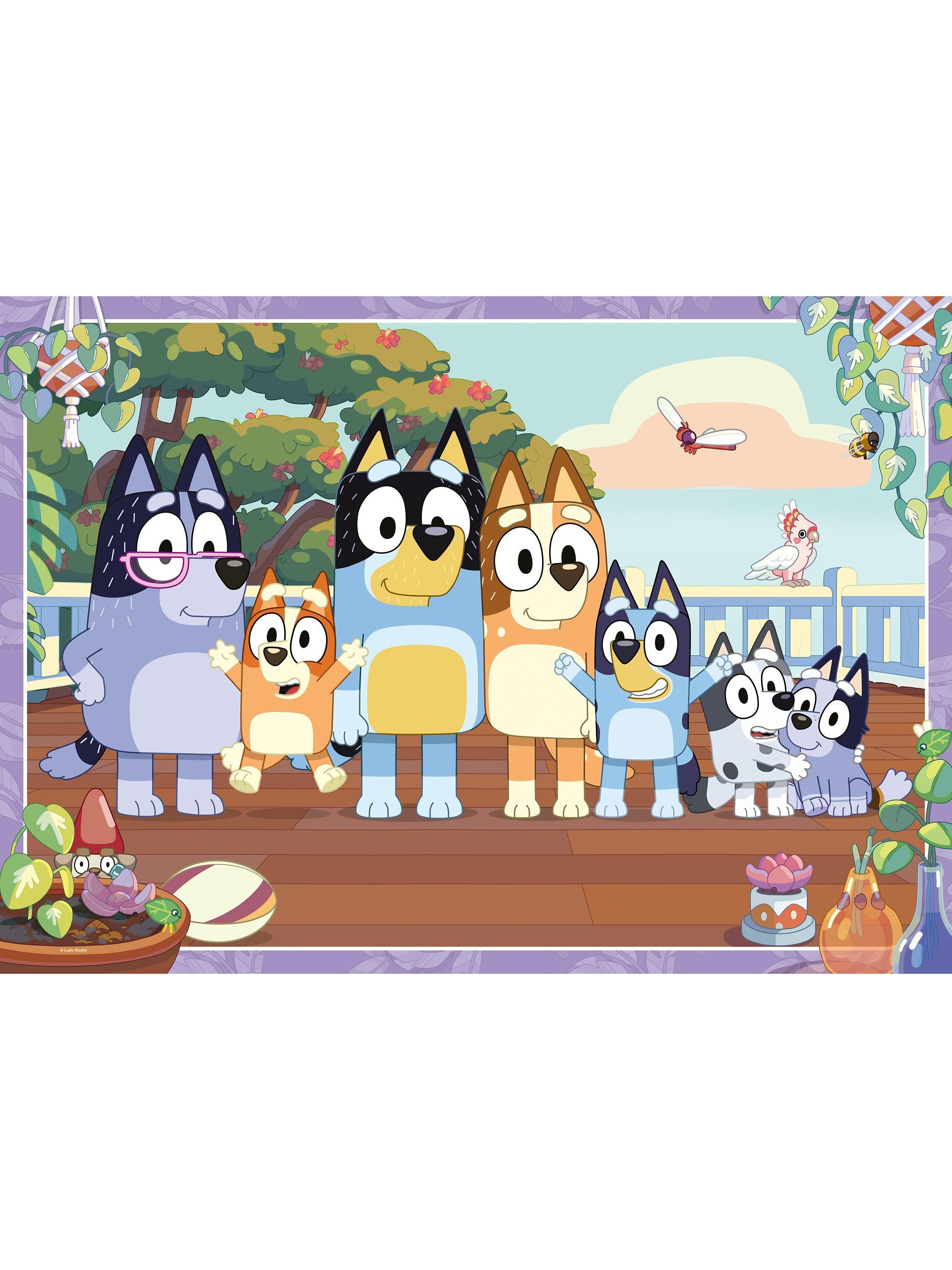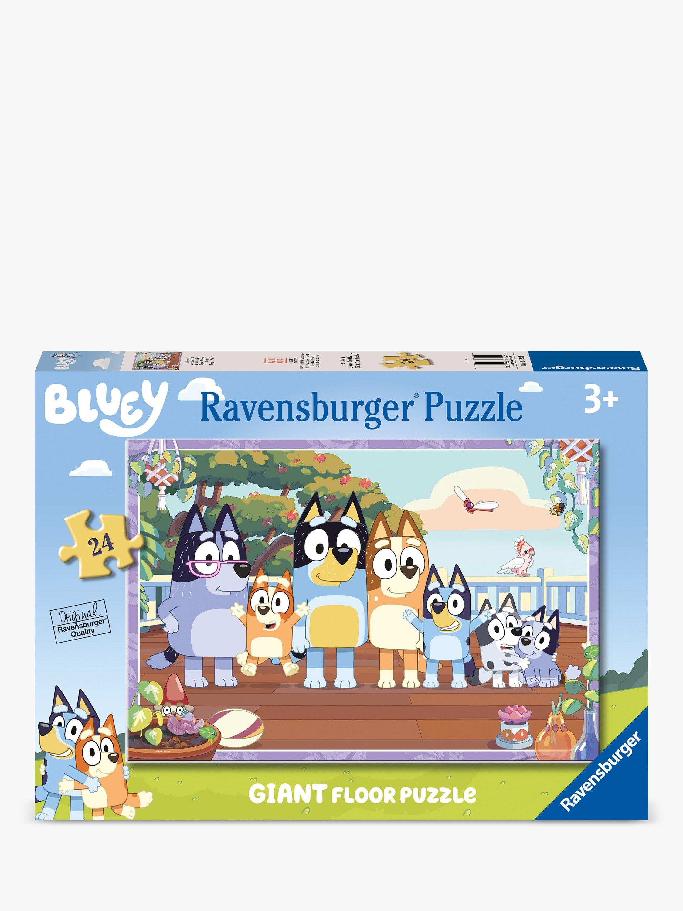 Say g'day to Bluey and her family on this fun and colourful giant floor puzzle. Nana, Bingo, Bluey, Chilli (Mum), Bandit (Dad), Muffin and Socks strike a happy pose in a colourful garden scene. A must for any Bluey fan!