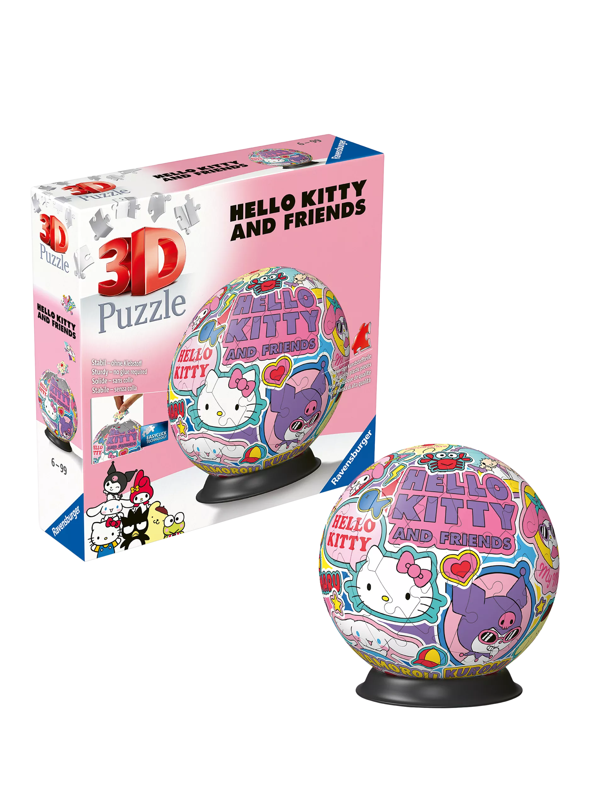 A high-quality 3D puzzle ball featuring character favourites from Hello Kitty and Friends. All of the pieces fit together perfectly to form a strong and sturdy spherical puzzle. Comes with a plastic stand so you can place your completed 3D puzzle on display in your room for everyone to admire.