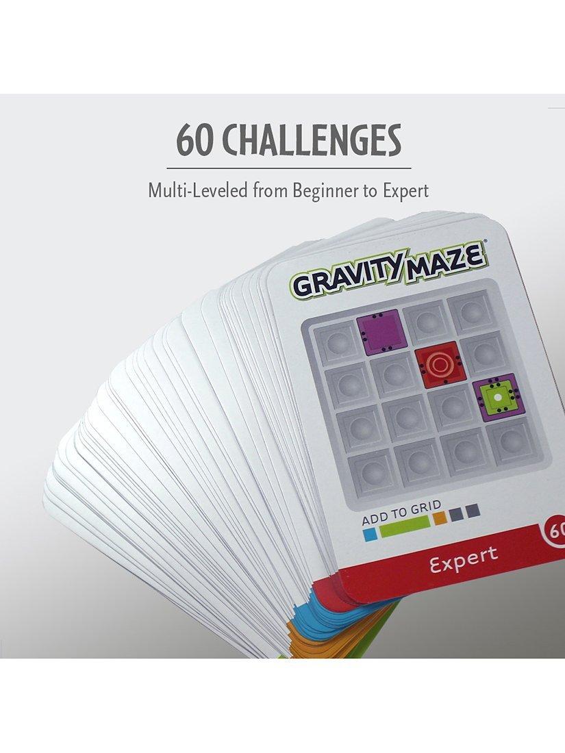 Can you complete the 60 challenge cards? Test yourself against your friends or experiment and see what happens when you build your own Gravity Maze tower paths.